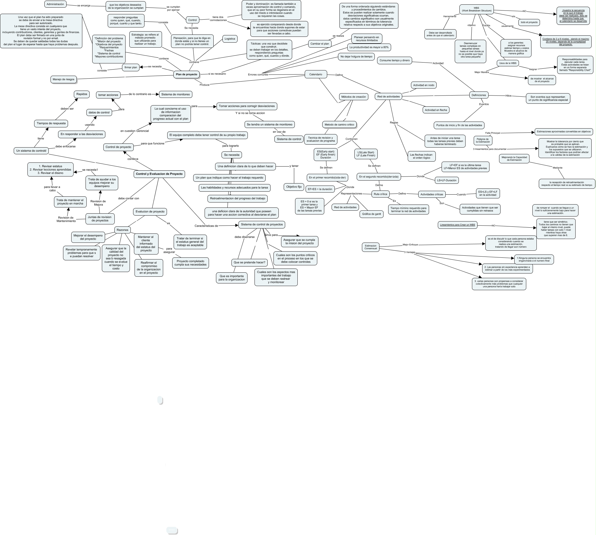 This Concept Map, created with IHMC CmapTools, has information related to: Semana 8, Control de proyecto en cuestion Gerencial La cual concierne el uso de informacion comparacion del progreso actual con el plan, datos de control para tomar acciones, WBS (Work Breakdown Structure) NO muestra la secuencia en la que el trabajo debe ser realizado, ésto se determina hasta que el calendario se desarrolla, WBS (Work Breakdown Structure) Facilita a los gerentes: asignar recursos estimar tiempo y costos Muestra el alcance de manera gráfica, Razones ???? Revelar tempranamente problemas para que s e puedan resolver, Control y Evaluacion de Proyecto Caracteristicas de Sistema de control de proyectos, Se necesita ???? Las habilidades y recursos adecuados para la tarea, Peligros de la Estimación 3 lineamientos para documentar Mostrar la tolerancia por ciento que es probable que se aplican. Explícanos cómo se hizo la estimación y los supuestos que se utilizaron. Identificar los factores que podrían afectar a la validez de la estimación, WBS (Work Breakdown Structure) Usos de la WBS, Lineamientos para Crear un WBS NO tiene que ser simétrico. Todos los caminos no tienen que bajar al mismo nivel, puede haber tareas con solo 1 nivel mientras haya otras que superen mas de 6., Sistema de control de proyectos Sirve para Asegurar que se cumpla la mision del proyecto, Razones ???? Mejorar el desempeno del proyecto, Red de actividades Reglas Las flechas indican el orden lógico, Razones ???? Reafirmar el compromiso de la organizacion en el proyecto, Calendario Define Red de actividades, Calendario Métodos de creación, En el segundo recorrido(der-izda) Define Ruta crítica, Se necesita ???? Un plan que indique como hacer el trabajo requerdo, Plan de proyecto contiene *Definición del problema *Misión del proyecto *Objetivos del proyecto *Requerimientos *Fechas *Sistema de control *Mayores contribuidores, Estimacion Consensual 3 Ventajas 3. varias personas son propensas a considerar colectivamente más problemas que cualquier una persona haría trabajar solo