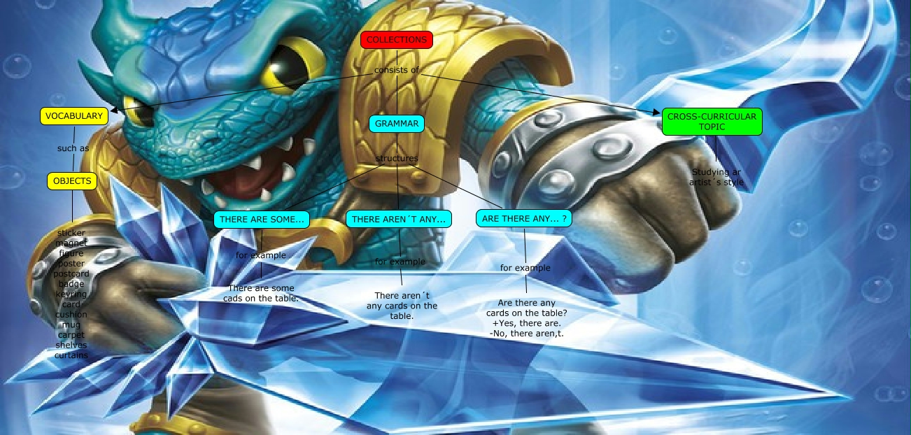Este Cmap, tiene información relacionada con: COLLECTIONS-Raúl, GRAMMAR structures ARE THERE ANY... ?, GRAMMAR structures THERE AREN´T ANY..., COLLECTIONS consists of VOCABULARY, OBJECTS ???? sticker magnet figure poster postcard badge keyring card cushion mug carpet shelves curtains, VOCABULARY such as OBJECTS, COLLECTIONS consists of CROSS-CURRICULAR TOPIC, THERE ARE SOME... for example There are some cads on the table., CROSS-CURRICULAR TOPIC ???? Studying ar artist´s style, COLLECTIONS consists of GRAMMAR, THERE AREN´T ANY... for example There aren´t any cards on the table., GRAMMAR structures THERE ARE SOME..., ARE THERE ANY... ? for example Are there any cards on the table? +Yes, there are. -No, there aren,t.
