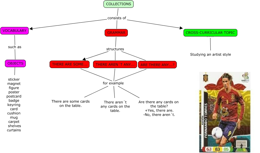 Este Cmap, tiene información relacionada con: COLLECTIONS-Pablo, THERE AREN´T ANY... for example There are some cards on the table., ARE THERE ANY...? for example There aren´t any cards on the table., THERE AREN´T ANY... for example There aren´t any cards on the table., THERE ARE SOME... for example There aren´t any cards on the table., COLLECTIONS consists of GRAMMAR, GRAMMAR structures THERE ARE SOME..., OBJECTS ???? sticker magnet figure poster postcard badge keyring card cushion mug carpet shelves curtains, GRAMMAR structures ARE THERE ANY...?, COLLECTIONS consists of VOCABULARY, COLLECTIONS consists of CROSS-CURRICULAR TOPIC, GRAMMAR structures THERE AREN´T ANY..., THERE ARE SOME... for example There are some cards on the table., CROSS-CURRICULAR TOPIC ???? Studying an artist style, ARE THERE ANY...? for example Are there any cards on the table? +Yes, there are. -No, there aren´t., THERE ARE SOME... for example Are there any cards on the table? +Yes, there are. -No, there aren´t., ARE THERE ANY...? for example There are some cards on the table., THERE AREN´T ANY... for example Are there any cards on the table? +Yes, there are. -No, there aren´t., VOCABULARY such as OBJECTS