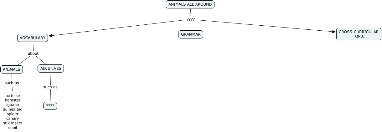 Este Cmap, tiene información relacionada con: ANIMALS ALL AROUND-Pablo, ANIMALS ALL AROUND ???? CROSS-CURRICULAR TOPIC, VOCABULARY about ADJETIVES, ANIMALS ALL AROUND ???? GRAMMAR, ANIMALS such as tortoise hamster iguana guinea pig spider canary stik insect snail, VOCABULARY about ANIMALS, ANIMALS ALL AROUND ???? VOCABULARY, ADJETIVES such as ????
