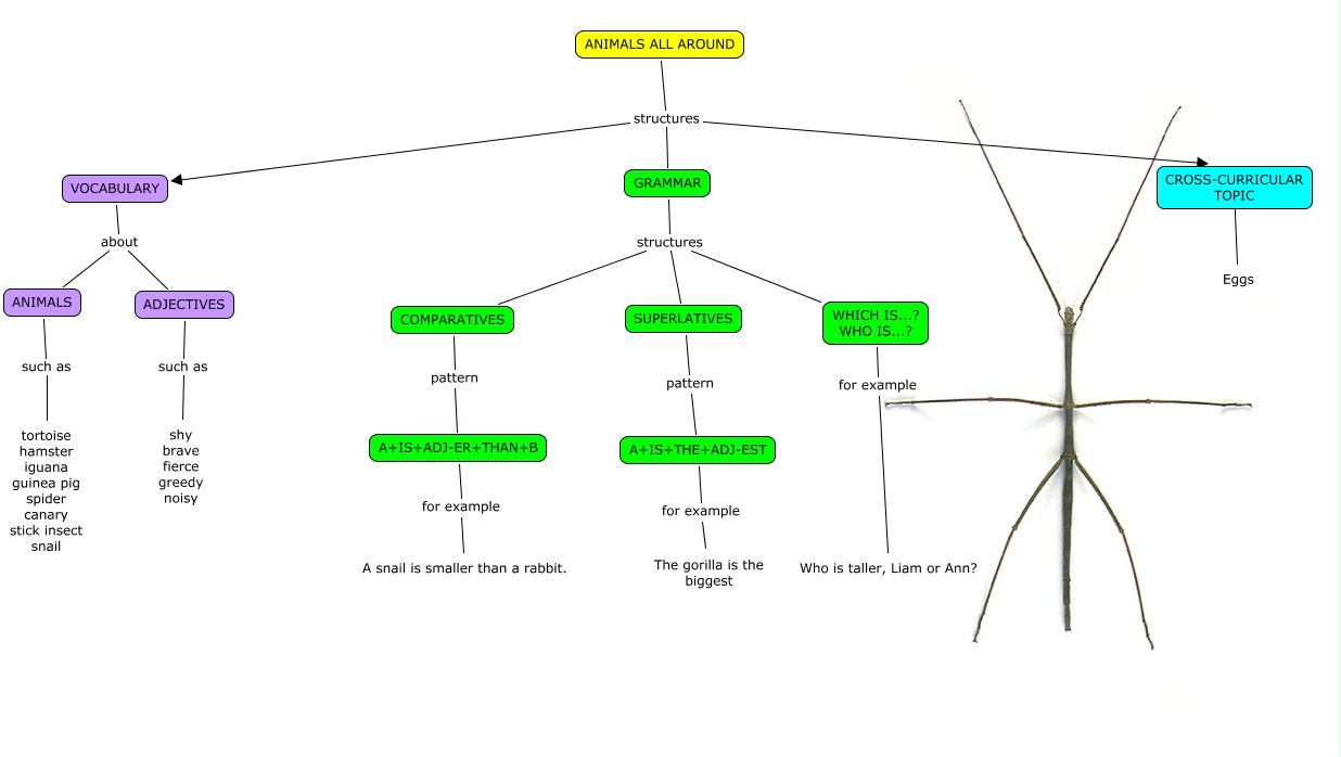 Este Cmap, tiene información relacionada con: ANIMALS ALL ROUND-Eduardo, CROSS-CURRICULAR TOPIC ???? Eggs, GRAMMAR structures WHICH IS...? WHO IS...?, SUPERLATIVES pattern A+IS+THE+ADJ-EST, COMPARATIVES pattern A+IS+ADJ-ER+THAN+B, A+IS+ADJ-ER+THAN+B for example A snail is smaller than a rabbit., VOCABULARY about ANIMALS, ADJECTIVES such as shy brave fierce greedy noisy, ANIMALS ALL AROUND structures CROSS-CURRICULAR TOPIC, ANIMALS ALL AROUND structures GRAMMAR, ANIMALS ALL AROUND structures VOCABULARY, VOCABULARY about ADJECTIVES, ANIMALS such as tortoise hamster iguana guinea pig spider canary stick insect snail, GRAMMAR structures COMPARATIVES, A+IS+THE+ADJ-EST for example The gorilla is the biggest, GRAMMAR structures SUPERLATIVES, WHICH IS...? WHO IS...? for example Who is taller, Liam or Ann?