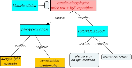 This Concept Map, created with IHMC CmapTools, has information related to: mapa barbara, estudio alergologico prick test + IgE espesifica positivo PROVOCACION, PROVOCACION positvo alergia a pv no IgM mediada, PROVOCACION negativo tolerancia actual, PROVOCACION negativo sensibilidad asintomatica, historia clinica, PROVOCACION positivo alergia IgM mediada, estudio alergologico prick test + IgE espesifica negativo PROVOCACION
