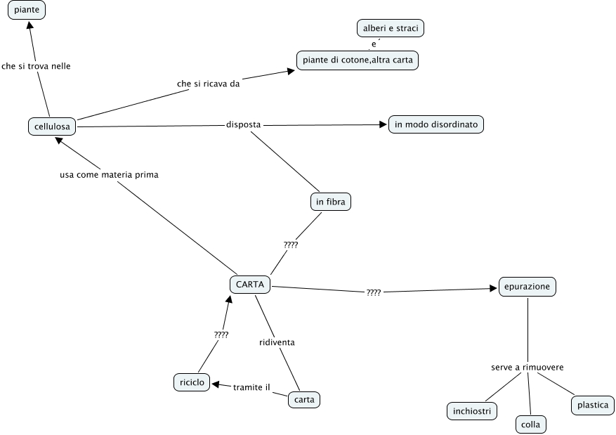 Questa Cmap, creata con IHMC CmapTools, contiene informazioni relative a: carta riciclo, epurazione serve a rimuovere inchiostri, in fibra ???? CARTA, carta tramite il riciclo, epurazione serve a rimuovere colla, piante di cotone,altra carta e alberi e straci, CARTA ridiventa carta, CARTA ???? epurazione, cellulosa che si trova nelle piante, cellulosa disposta in fibra, riciclo ???? CARTA, epurazione serve a rimuovere plastica, cellulosa disposta in modo disordinato, CARTA usa come materia prima cellulosa, cellulosa che si ricava da piante di cotone,altra carta