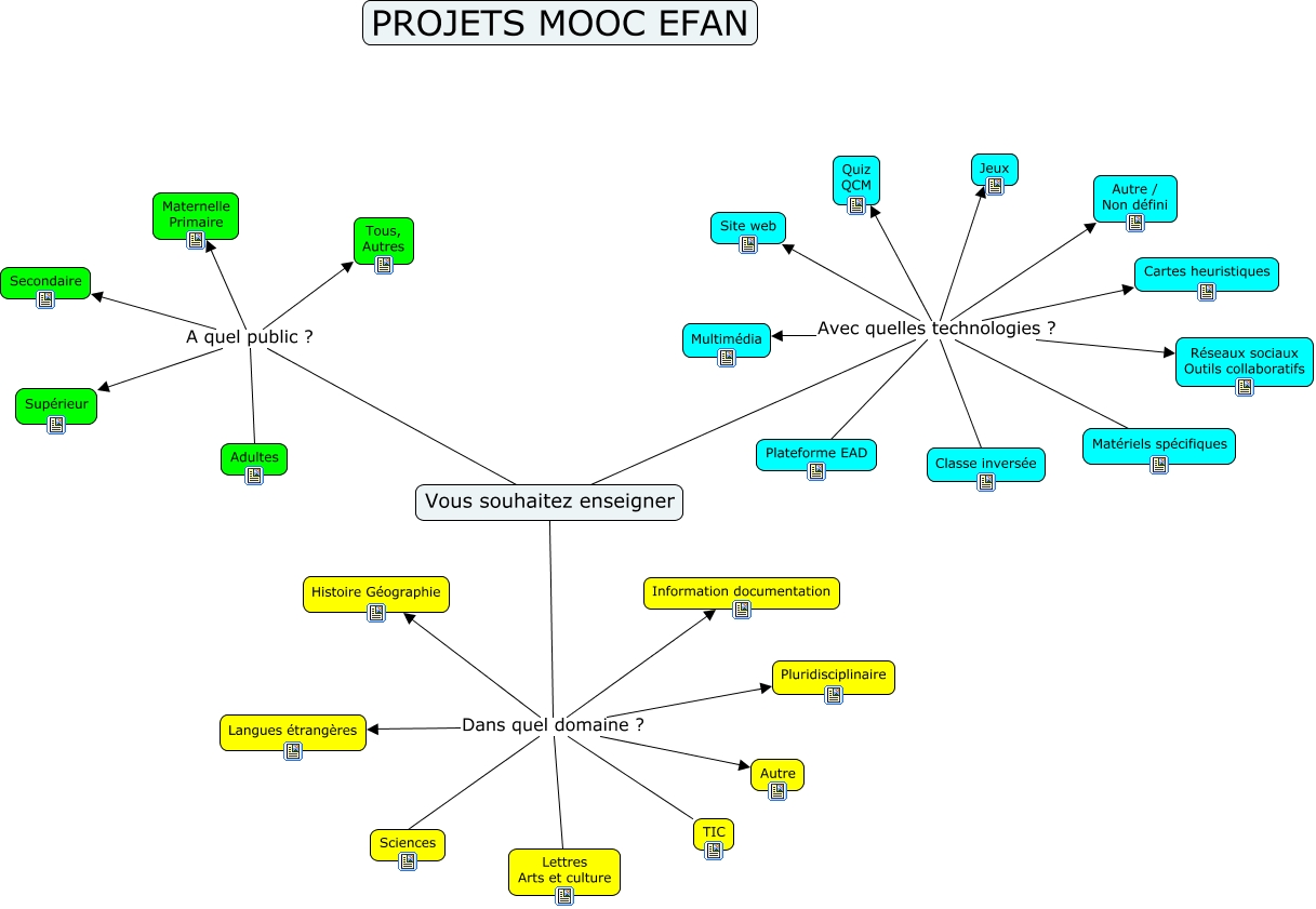 Cette carte de concepts créée avec IHMC CmapTools traite de: cartographie projets EFAN, Vous souhaitez enseigner Dans quel domaine ? TIC, Vous souhaitez enseigner A quel public ? Maternelle Primaire, Vous souhaitez enseigner Avec quelles technologies ? Jeux, Vous souhaitez enseigner Dans quel domaine ? Autre, Vous souhaitez enseigner A quel public ? Adultes, Vous souhaitez enseigner Avec quelles technologies ? Matériels spécifiques, Vous souhaitez enseigner A quel public ? Secondaire, Vous souhaitez enseigner Avec quelles technologies ? Plateforme EAD, Vous souhaitez enseigner Avec quelles technologies ? Classe inversée, Vous souhaitez enseigner Avec quelles technologies ? Quiz QCM, Vous souhaitez enseigner A quel public ? Supérieur, Vous souhaitez enseigner Avec quelles technologies ? Réseaux sociaux Outils collaboratifs, Vous souhaitez enseigner Dans quel domaine ? Histoire Géographie, Vous souhaitez enseigner Avec quelles technologies ? Autre / Non défini, Vous souhaitez enseigner A quel public ? Tous, Autres, Vous souhaitez enseigner Dans quel domaine ? Lettres Arts et culture, Vous souhaitez enseigner Dans quel domaine ? Sciences, Vous souhaitez enseigner Avec quelles technologies ? Multimédia, Vous souhaitez enseigner Dans quel domaine ? Information documentation, Vous souhaitez enseigner Avec quelles technologies ? Cartes heuristiques
