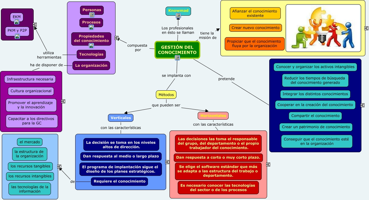 Este Cmap, tiene información relacionada con: Gestión del Conocimiento, Horizontales con las características ????, Requiere el conocimiento de ????, GESTIÓN DEL CONOCIMIENTO se implanta con Métodos, La organización ha de disponer de ????, GESTIÓN DEL CONOCIMIENTO compuesta por ????, GESTIÓN DEL CONOCIMIENTO tiene la misión de ????, Métodos que pueden ser Verticales, GESTIÓN DEL CONOCIMIENTO Los profesionales en ésto se llaman Knowmad, Tecnologías utiliza herramientas ????, Verticales con las características ????, GESTIÓN DEL CONOCIMIENTO pretende ????, Métodos que pueden ser Horizontales
