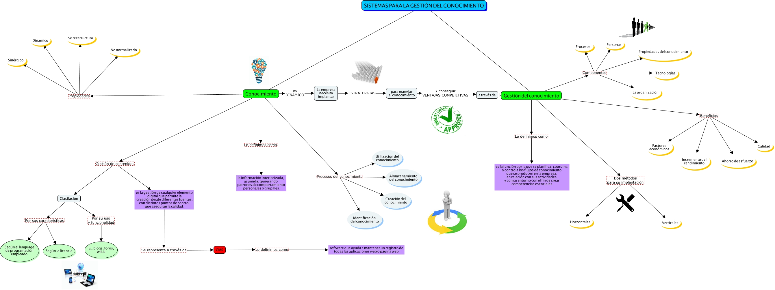 This Concept Map, created with IHMC CmapTools, has information related to: Sistemas para la gestión del conocimiento, Conocimiento Gestión de contenidos es la gestión de cualquier elemento digital que permite la creación desde diferentes fuentes, con distintos puntos de control que aseguran la calidad., SISTEMAS PARA LA GESTIÓN DEL CONOCIMIENTO Gestión del conocimiento, Conocimiento Propiedades Dinámico, Gestión del conocimiento Dos métodos para su implantación Verticales, CMS Lo definimos como software que ayuda a mantener un registro de todas las aplicaciones web o página web, Gestión del conocimiento Componentes Procesos, Conocimiento es DINÁMICO La empresa necesita implantar, Clasifación Por sus características Según el lenguage de programación empleado, Gestión del conocimiento Dos métodos para su implantación Horzontales, Gestión del conocimiento Beneficios Ahorro de esfuerzo, Gestión del conocimiento Beneficios Incremento del rendimiento, Conocimiento Propiedades Se reestructura, a través de Gestión del conocimiento, es la gestión de cualquier elemento digital que permite la creación desde diferentes fuentes, con distintos puntos de control que aseguran la calidad. Se representa a través de CMS, Conocimiento Propiedades No normalizado, Gestión del conocimiento Componentes Tecnologías, Conocimiento Procesos del conocimiento Creación del conocimiento, Conocimiento Lo definimos como la información interiorizada, asumida, generando patrones de comportamiento personales o grupales., Clasifación Por sus características Según la licencia, para manejar el conocimiento Y conseguir VENTAJAS COMPETITIVAS a través de