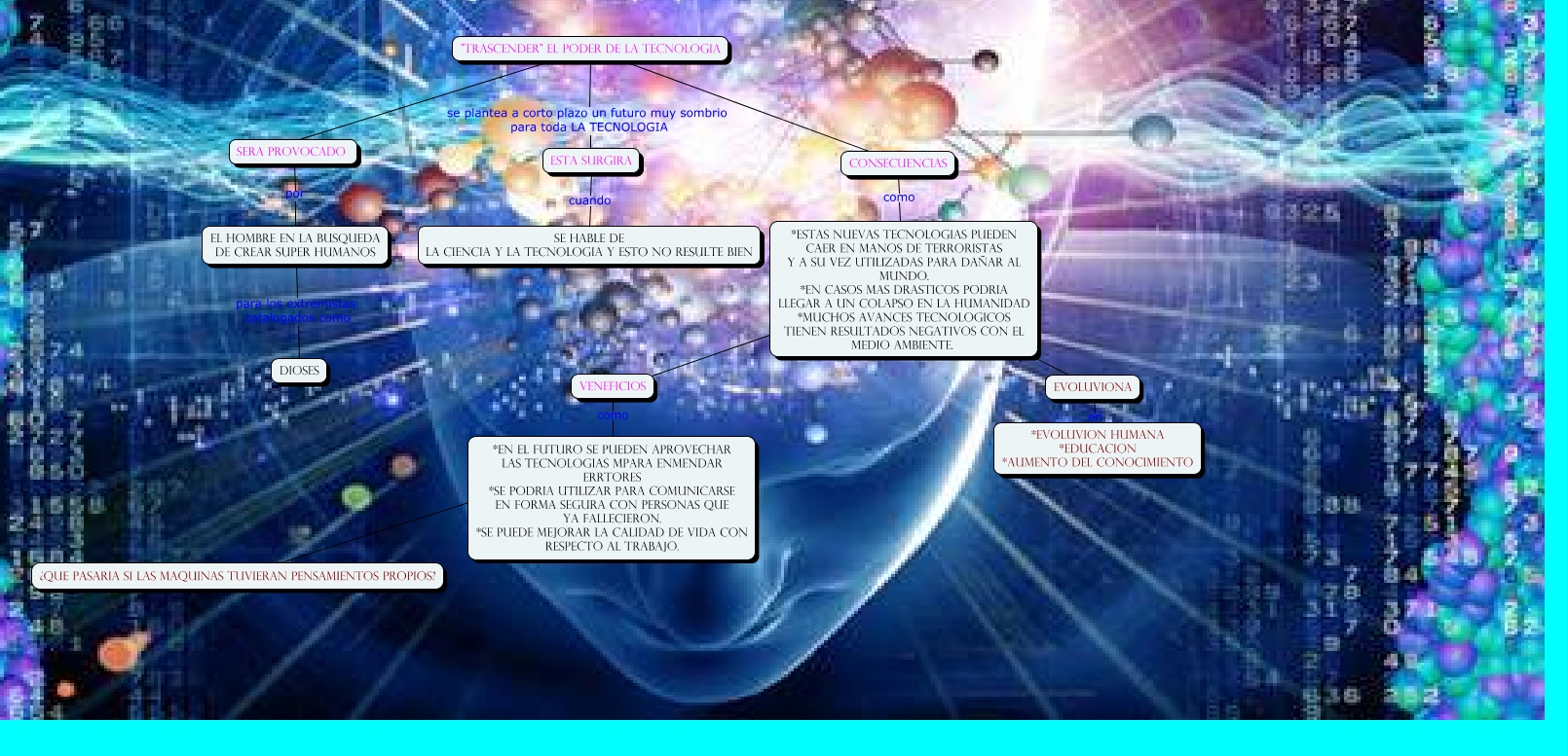 Este Cmap, tiene información relacionada con: KAREN VANESSA RODRIGUEZ, consecuencias como *Estas nuevas tecnologias pueden caer en manos de terroristas y a su vez utilizadas para dañar al mundo. *en casos mas drasticos podria llegar a un colapso en la humanidad *muchos avances tecnologicos tienen resultados negativos con el medio ambiente., "trascender" el poder de la tecnologia ???? sera provocado, sera provocado por el hombre en la busqueda de crear super humanos, veneficios como *en el futuro se pueden aprovechar las tecnologias mpara enmendar errtores *se podria utilizar para comunicarse en forma segura con personas que ya fallecieron. *se puede mejorar la calidad de vida con respecto al trabajo., evoluviona ???? *Estas nuevas tecnologias pueden caer en manos de terroristas y a su vez utilizadas para dañar al mundo. *en casos mas drasticos podria llegar a un colapso en la humanidad *muchos avances tecnologicos tienen resultados negativos con el medio ambiente., el hombre en la busqueda de crear super humanos para los extremistas catalogados como DIOSES, *Estas nuevas tecnologias pueden caer en manos de terroristas y a su vez utilizadas para dañar al mundo. *en casos mas drasticos podria llegar a un colapso en la humanidad *muchos avances tecnologicos tienen resultados negativos con el medio ambiente. ???? veneficios, ¿QUE PASARIA SI LAS MAQUINAS TUVIERAN PENSAMIENTOS PROPIOS? ???? *en el futuro se pueden aprovechar las tecnologias mpara enmendar errtores *se podria utilizar para comunicarse en forma segura con personas que ya fallecieron. *se puede mejorar la calidad de vida con respecto al trabajo., "trascender" el poder de la tecnologia se plantea a corto plazo un futuro muy sombrio para toda LA TECNOLOGIA Esta surgira, evoluviona en *Evoluvion humana *Educacion *aumento del conocimiento, Esta surgira cuando se hable de la ciencia y la tecnologia y esto no resulte bien, "trascender" el poder de la tecnologia ???? consecuencias