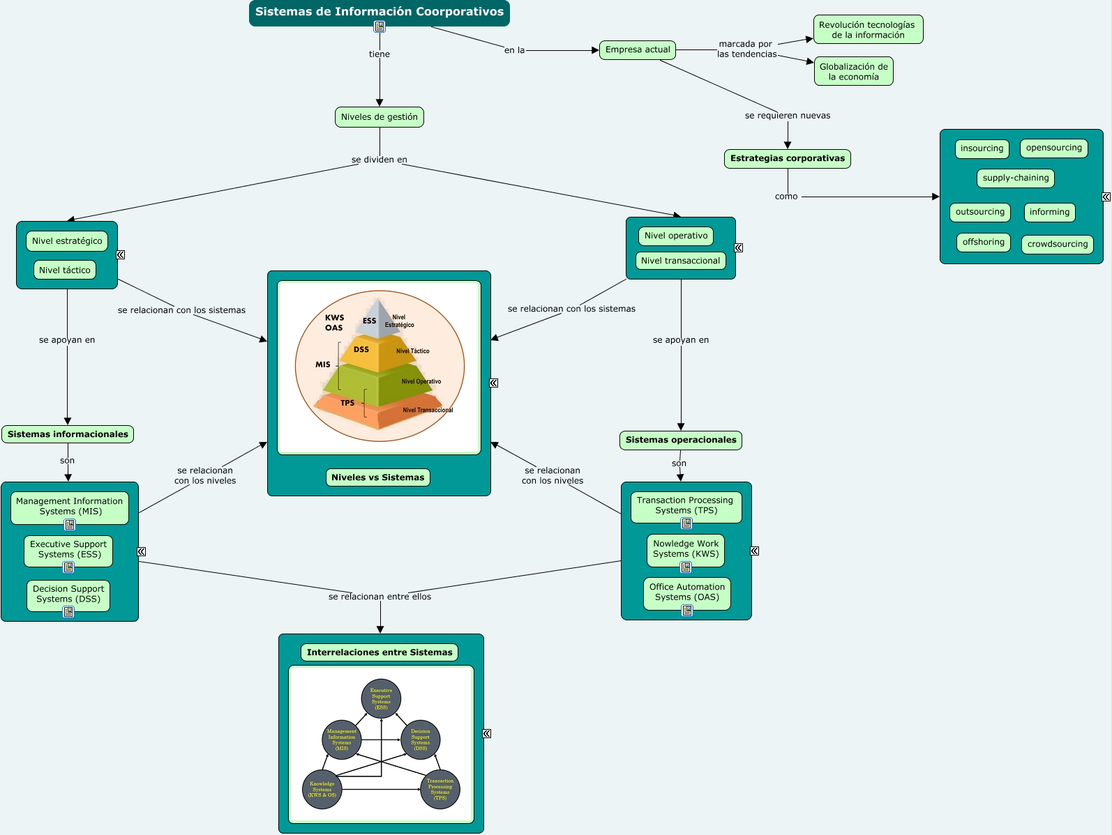 Este Cmap, tiene información relacionada con: Sistemas de Información, Empresa actual marcada por las tendencias Globalización de la economía, Sistemas de Información Coorporativos en la Empresa actual, ???? se apoyan en Sistemas informacionales, ???? se relacionan entre ellos ????, Sistemas informacionales son ????, ???? se relacionan con los sistemas ????, Sistemas operacionales son ????, ???? se relacionan entre ellos ????, ???? se apoyan en Sistemas operacionales, Niveles de gestión se dividen en ????, Empresa actual se requieren nuevas Estrategias corporativas, ???? se relacionan con los sistemas ????, ???? se relacionan con los niveles ????, Niveles de gestión se dividen en ????, Sistemas de Información Coorporativos tiene Niveles de gestión, Estrategias corporativas como ????, ???? se relacionan con los niveles ????, Empresa actual marcada por las tendencias Revolución tecnologías de la información
