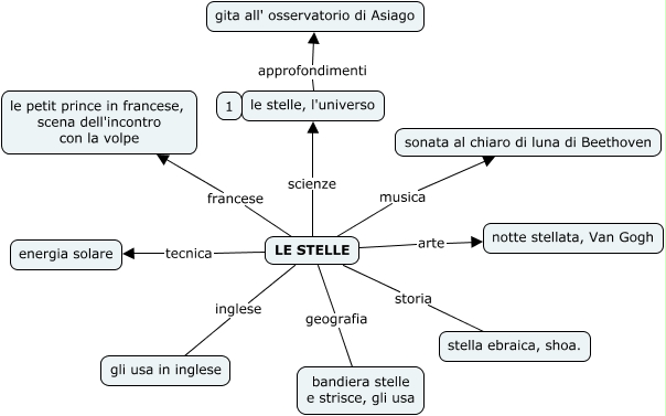 Questa Cmap, creata con IHMC CmapTools, contiene informazioni relative a: mappa 1 francesco valente, le stelle, l'universo approfondimenti gita all' osservatorio di Asiago, LE STELLE arte notte stellata, Van Gogh, LE STELLE geografia bandiera stelle e strisce, gli usa, LE STELLE inglese gli usa in inglese, LE STELLE francese le petit prince in francese, scena dell'incontro con la volpe, LE STELLE storia stella ebraica, shoa., LE STELLE musica sonata al chiaro di luna di Beethoven, LE STELLE tecnica energia solare, LE STELLE scienze le stelle, l'universo