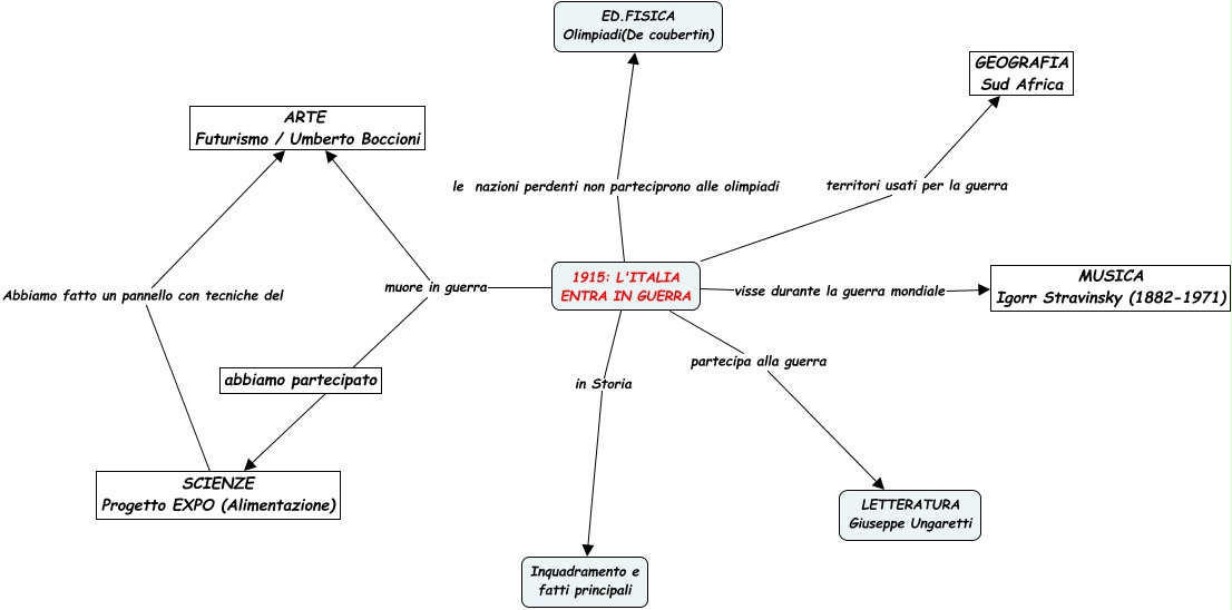 Questa Cmap, creata con IHMC CmapTools, contiene informazioni relative a: Christian Pittaro, 1915: L'ITALIA ENTRA IN GUERRA le nazioni perdenti non parteciprono alle olimpiadi ED.FISICA Olimpiadi(De coubertin), 1915: L'ITALIA ENTRA IN GUERRA in Storia Inquadramento e fatti principali, 1915: L'ITALIA ENTRA IN GUERRA territori usati per la guerra GEOGRAFIA Sud Africa, 1915: L'ITALIA ENTRA IN GUERRA muore in guerra SCIENZE Progetto EXPO (Alimentazione), 1915: L'ITALIA ENTRA IN GUERRA partecipa alla guerra LETTERATURA Giuseppe Ungaretti, 1915: L'ITALIA ENTRA IN GUERRA muore in guerra ARTE Futurismo / Umberto Boccioni, SCIENZE Progetto EXPO (Alimentazione) Abbiamo fatto un pannello con tecniche del ARTE Futurismo / Umberto Boccioni, 1915: L'ITALIA ENTRA IN GUERRA visse durante la guerra mondiale MUSICA Igorr Stravinsky (1882-1971)