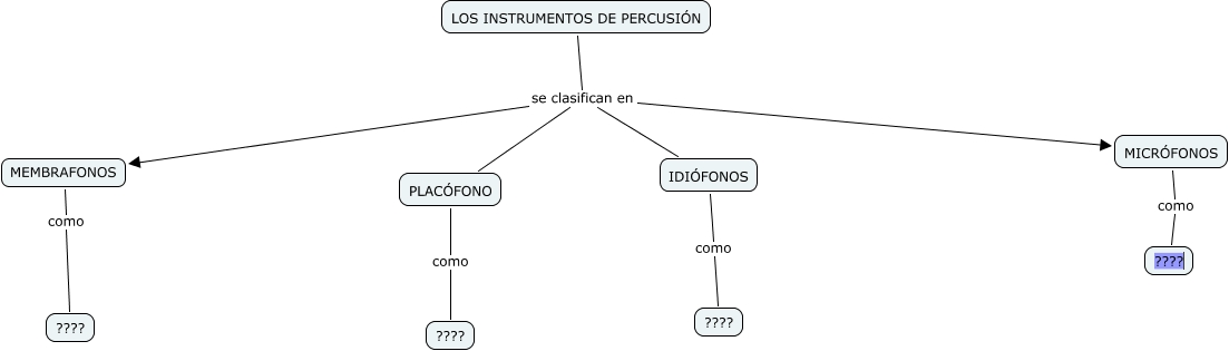 Este Cmap, tiene información relacionada con: Instrumentos de percusión- Eduardo, LOS INSTRUMENTOS DE PERCUSIÓN se clasifican en PLACÓFONO, PLACÓFONO como ????, MEMBRAFONOS como ????, MICRÓFONOS como ????, LOS INSTRUMENTOS DE PERCUSIÓN se clasifican en IDIÓFONOS, LOS INSTRUMENTOS DE PERCUSIÓN se clasifican en MICRÓFONOS, IDIÓFONOS como ????, LOS INSTRUMENTOS DE PERCUSIÓN se clasifican en MEMBRAFONOS