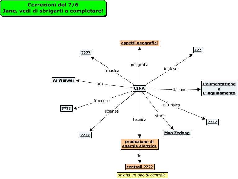 Questa Cmap, creata con IHMC CmapTools, contiene informazioni relative a: ashley oloc oloc, CINA inglese ???, CINA storia Mao Zedong, CINA italiano L'alimentazione e L'inquinamento, CINA geografia aspetti geografici, produzione di energia elettrica in centrali ????, CINA E.D fisica ????, CINA scienze ????, CINA arte Ai Weiwei, CINA tecnica produzione di energia elettrica, CINA musica ????, CINA francese ????