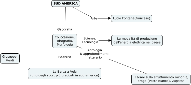 Este Cmap, tiene información relacionada con: Emanuele_Nisco, SUD AMERICA Geografia Collocazione, Idrografia, Morfologia, Collocazione, Idrografia, Morfologia Scienze, Tecnologia La modalità di produzione dell'energia elettrica nel paese, Collocazione, Idrografia, Morfologia Ed.fisica La Barca a Vela (uno degli sport più praticati in sud america), Collocazione, Idrografia, Morfologia Antologia & approfondimento letterario I brani sullo sfruttamento minorile, droga (Peste Bianca), Zapatos, SUD AMERICA Arte Lucio Fontana(francese)