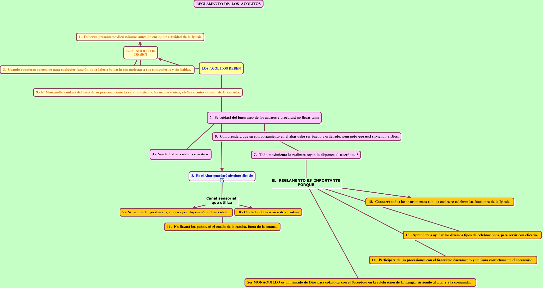 Este Cmap, tiene información relacionada con: reglamento de los acolitos, 7.- Todo movimiento lo realizará según lo disponga el sacerdote. 8 EL REGLAMENTO ES INPORTANTE PORQUE 12.- Conocerá todos los instrumentos con los cuales se celebran las funciones de la Iglesia., LOS ACOLITOS DEBEN a través de 4.- Ayudará al sacerdote a revestirse, 7.- Todo movimiento lo realizará según lo disponga el sacerdote. 8 EL REGLAMENTO ES INPORTANTE PORQUE Ser MONAGUILLO es un llamado de Dios para colaborar con el Sacerdote en la celebración de la liturgia, sirviendo al altar y a la comunidad., 5.- Se cuidará del buen aseo de los zapatos y procurará no llevar tenis EL ACOLITO DEBE 6.- Comprenderá que su comportamiento en el altar debe ser bueno y ordenado, pensando que está sirviendo a Dios., LOS ACOLITOS DEBEN ???? 1.- Deberán presentarse diez minutos antes de cualquier actividad de la Iglesia, 8.- En el Altar guardará absoluto silencio Canal sensorial que utiliza 10.- Cuidará del buen aseo de su sotana, LOS ACOLITOS DEBEN con LOS ACOLITOS DEBEN, 7.- Todo movimiento lo realizará según lo disponga el sacerdote. 8 EL REGLAMENTO ES INPORTANTE PORQUE 13.- Aprenderá a ayudar los diversos tipos de celebraciones, para servir con eficacia., 7.- Todo movimiento lo realizará según lo disponga el sacerdote. 8 EL REGLAMENTO ES INPORTANTE PORQUE 14.- Participará de las procesiones con el Santísimo Sacramento y utilizará correctamente el incensario., 5.- Se cuidará del buen aseo de los zapatos y procurará no llevar tenis EL ACOLITO DEBE 7.- Todo movimiento lo realizará según lo disponga el sacerdote. 8, LOS ACOLITOS DEBEN ???? 2.- Cuando requieran revestirse para cualquier función de la Iglesia lo harán sin molestar a sus compañeros y sin hablar., 8.- En el Altar guardará absoluto silencio Canal sensorial que utiliza 9.- No saldrá del presbiterio, a no ser por disposición del sacerdote., LOS ACOLITOS DEBEN a través de 8.- En el Altar guardará absoluto silencio, LOS ACOLITOS DEBEN a través de 5.- Se cuidará del buen aseo de los zapatos y procurará no llevar tenis, 8.- En el Altar guardará absoluto silencio Canal sensorial que utiliza 11.- No llevará los puños, ni el cuello de la camisa, fuera de la sotana.