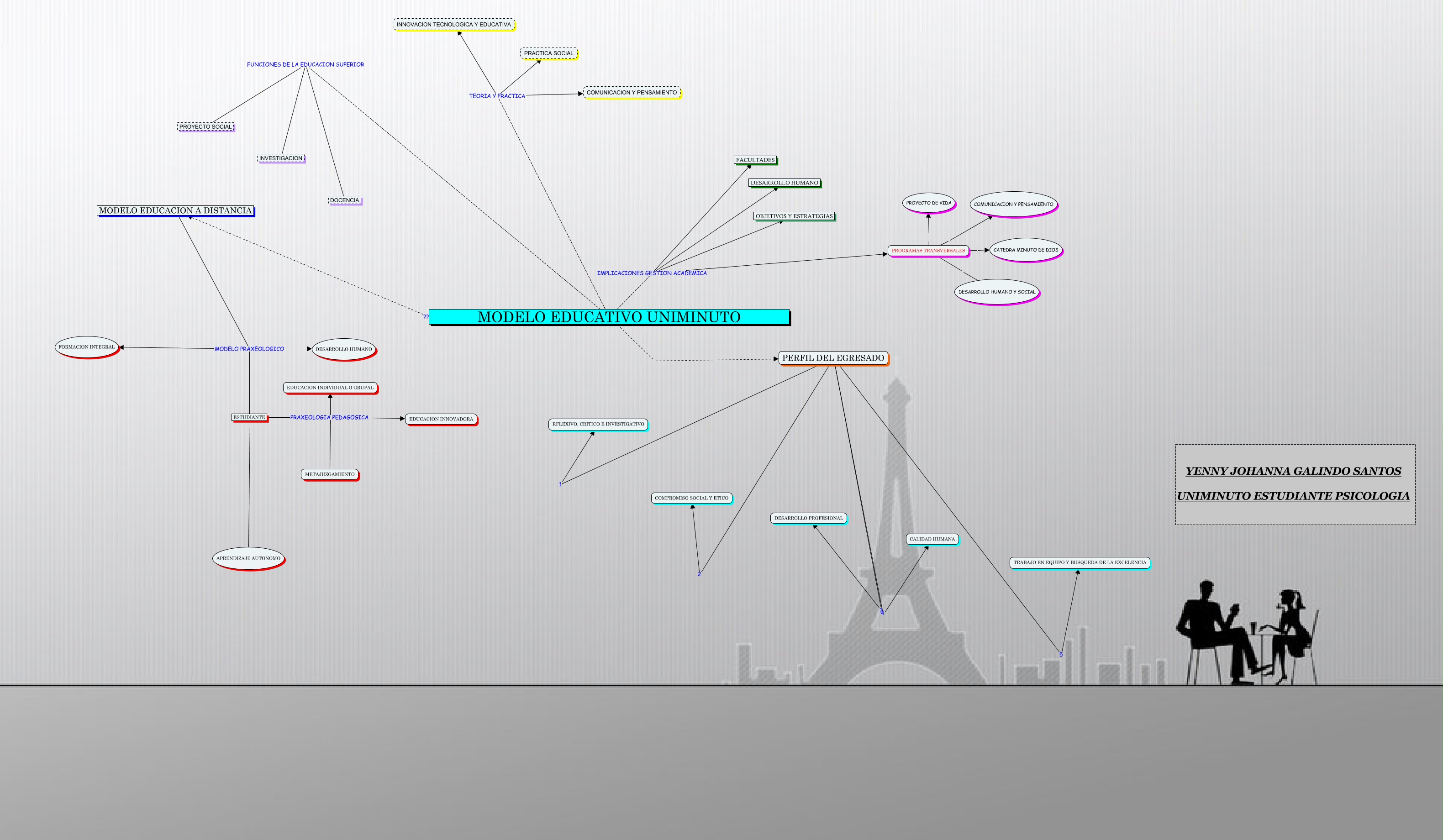 Este Cmap, tiene información relacionada con: MODELO EDUCATIVO UNIMINUTO 2, MODELO EDUCATIVO UNIMINUTO IMPLICACIONES GESTION ACADEMICA PROGRAMAS TRANSVERSALES, MODELO EDUCATIVO UNIMINUTO ???? MODELO EDUCACION A DISTANCIA, ESTUDIANTE PRAXEOLOGIA PEDAGOGICA EDUCACION INNOVADORA, PROGRAMAS TRANSVERSALES CATEDRA MINUTO DE DIOS, PROGRAMAS TRANSVERSALES PROYECTO DE VIDA, MODELO EDUCACION A DISTANCIA MODELO PRAXEOLOGICO ESTUDIANTE, PERFIL DEL EGRESADO 5 TRABAJO EN EQUIPO Y BUSQUEDA DE LA EXCELENCIA, MODELO EDUCATIVO UNIMINUTO FUNCIONES DE LA EDUCACION SUPERIOR DOCENCIA, MODELO EDUCATIVO UNIMINUTO IMPLICACIONES GESTION ACADEMICA OBJETIVOS Y ESTRATEGIAS, MODELO EDUCATIVO UNIMINUTO PERFIL DEL EGRESADO, PROGRAMAS TRANSVERSALES DESARROLLO HUMANO Y SOCIAL, PERFIL DEL EGRESADO 2 COMPROMISO SOCIAL Y ETICO, MODELO EDUCACION A DISTANCIA MODELO PRAXEOLOGICO DESARROLLO HUMANO, ESTUDIANTE APRENDIZAJE AUTONOMO, PROGRAMAS TRANSVERSALES PROYECTO DE VIDA, ESTUDIANTE PRAXEOLOGIA PEDAGOGICA EDUCACION INDIVIDUAL O GRUPAL, MODELO EDUCATIVO UNIMINUTO IMPLICACIONES GESTION ACADEMICA FACULTADES, PERFIL DEL EGRESADO 4 CALIDAD HUMANA, PERFIL DEL EGRESADO 1 RFLEXIVO, CRITICO E INVESTIGATIVO, ESTUDIANTE PRAXEOLOGIA PEDAGOGICA METAJUZGAMIENTO