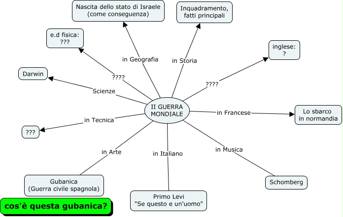 Questa Cmap, creata con IHMC CmapTools, contiene informazioni relative a: davide girardi, II GUERRA MONDIALE Scienze Darwin, II GUERRA MONDIALE ???? inglese: ?, II GUERRA MONDIALE in Tecnica ???, II GUERRA MONDIALE in Arte Gubanica (Guerra civile spagnola), II GUERRA MONDIALE in Francese Lo sbarco in normandia, II GUERRA MONDIALE in Musica Schomberg, II GUERRA MONDIALE in Geografia Nascita dello stato di Israele (come conseguenza), II GUERRA MONDIALE in Italiano Primo Levi "Se questo e un'uomo", II GUERRA MONDIALE ???? e.d fisica: ???, II GUERRA MONDIALE in Storia Inquadramento, fatti principali