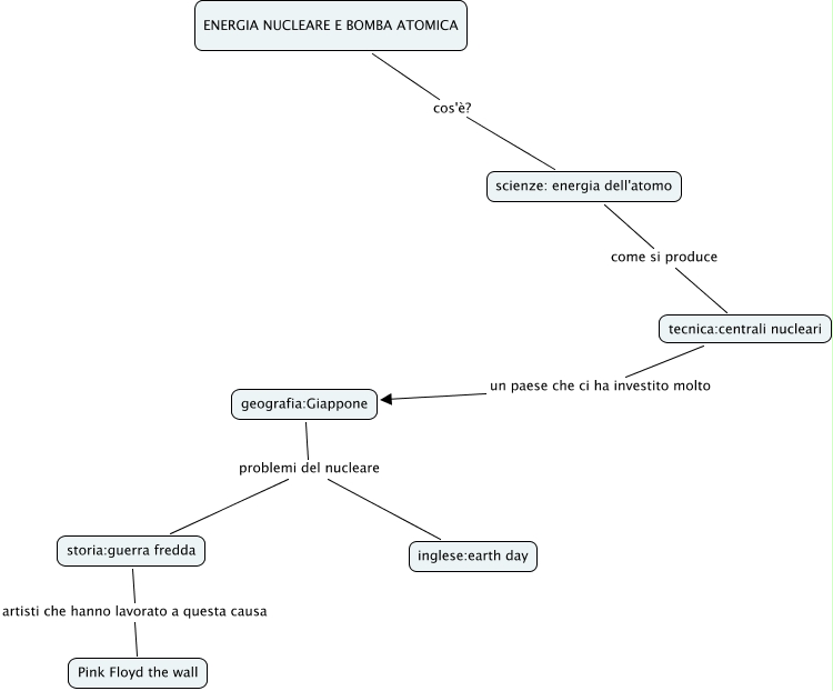 Questa Cmap, creata con IHMC CmapTools, contiene informazioni relative a: leonardo pino, ENERGIA NUCLEARE E BOMBA ATOMICA cos'è? scienze: energia dell'atomo, geografia:Giappone problemi del nucleare storia:guerra fredda, storia:guerra fredda artisti che hanno lavorato a questa causa Pink Floyd the wall, tecnica:centrali nucleari un paese che ci ha investito molto geografia:Giappone, geografia:Giappone problemi del nucleare inglese:earth day, scienze: energia dell'atomo come si produce tecnica:centrali nucleari