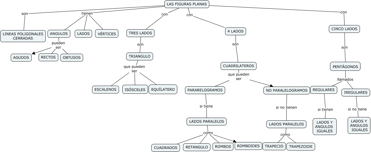 Este Cmap, tiene información relacionada con: LAS FIGURAS PLANAS -Derek -Germán, LAS FIGURAS PLANAS tienen VÉRTICES, ANGULOS pueden ser AGUDOS, CINCO LADOS son PENTÁGONOS, CUADRILATEROS que pueden ser NO PARALELOGRAMOS, PARARELOGRAMOS si tiene LADOS PARALELOS, LAS FIGURAS PLANAS con 4 LADOS, TRIANGULO que pueden ser ISÓSCELES, LAS FIGURAS PLANAS con CINCO LADOS, LADOS PARALELOS como TRAPECIO, TRIANGULO que pueden ser ESCALENOS, ANGULOS pueden ser RECTOS, IREGULARES si no tiene LADOS Y ANGULOS IGUALES, TRIANGULO que pueden ser EQUÍLATERO, LADOS PARALELOS como ROMBOS, ANGULOS pueden ser OBTUSOS, LADOS PARALELOS como RETANGULO, PENTÁGONOS llamados REGULARES, LADOS PARALELOS como ROMBOIDES, LAS FIGURAS PLANAS con TRES LADOS, PENTÁGONOS llamados IREGULARES