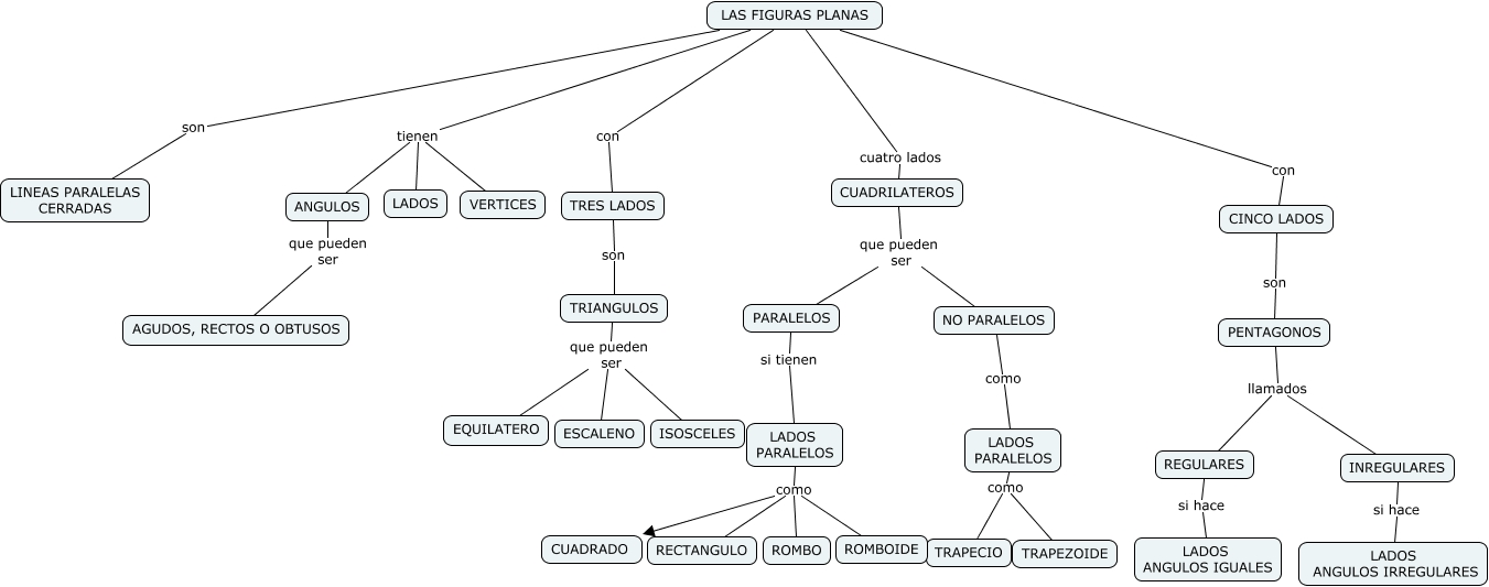 Este Cmap, tiene información relacionada con: FIGURAS PLANAS (María ,Fernando), LADOS PARALELOS como TRAPECIO, PARALELOS si tienen LADOS PARALELOS, LAS FIGURAS PLANAS tienen ANGULOS, LAS FIGURAS PLANAS con CINCO LADOS, TRES LADOS son TRIANGULOS, CINCO LADOS son PENTAGONOS, LAS FIGURAS PLANAS con TRES LADOS, REGULARES si hace LADOS ANGULOS IGUALES, LAS FIGURAS PLANAS tienen VERTICES, TRIANGULOS que pueden ser ISOSCELES, LAS FIGURAS PLANAS tienen LADOS, CUADRILATEROS que pueden ser NO PARALELOS, INREGULARES si hace LADOS ANGULOS IRREGULARES, LADOS PARALELOS como CUADRADO, LAS FIGURAS PLANAS son LINEAS PARALELAS CERRADAS, ANGULOS que pueden ser AGUDOS, RECTOS O OBTUSOS, PENTAGONOS llamados REGULARES, LADOS PARALELOS como RECTANGULO, NO PARALELOS como LADOS PARALELOS, LADOS PARALELOS como TRAPEZOIDE