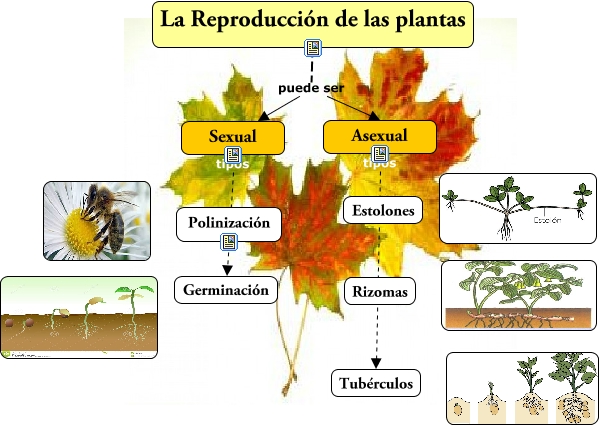 Este Cmap, tiene información relacionada con: Las Palntas (MªCarmen Montojo), La Reproducción de las plantas puede ser Sexual, Sexual tipos Germinación, Asexual tipos Tubérculos, La Reproducción de las plantas puede ser Asexual