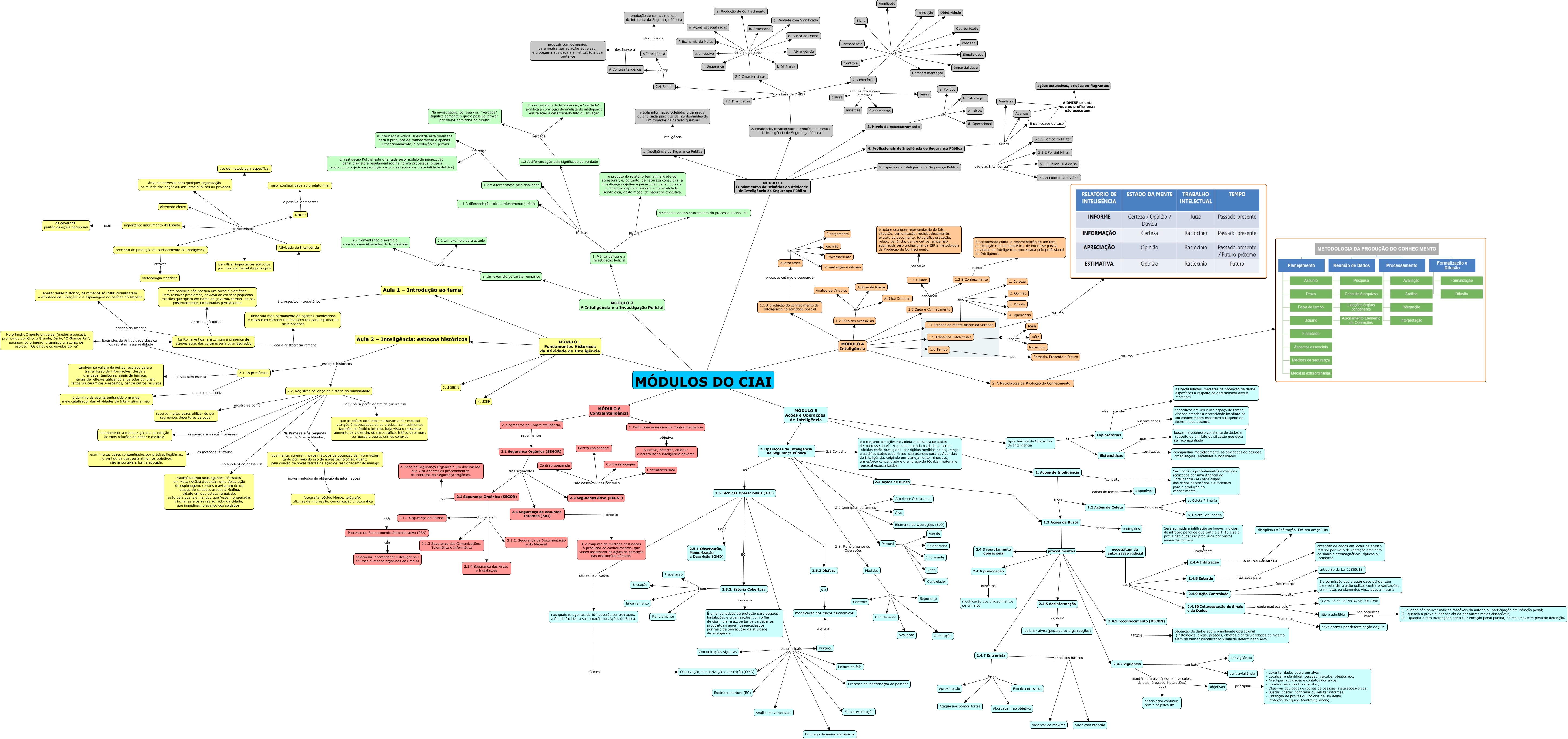 Esse mapa conceitual, produzido no IHMC CmapTools, tem a informação relacionada a: 00. ciai - resumo dos modulos, importante instrumento do Estado pois os governos pautão as ações decisórias, 2.5.2. Estória Cobertura fases Preparação, 2.5 Técnicas Operacionais (TOI) as principais Comunicações sigilosas, Disfarce o que é ? modificação dos traços fisionômicos, 1.2 Técnicas acessórias são Analíse de Vínculos, 2.5.2. Estória Cobertura fases Planejamento, 2.4.2 vigilância mantêm um alvo (pessoas, veículos, objetos, áreas ou instalações) sob) objetivos, 2.4.4 Infiltração importante Será admitida a infiltração se houver indícios de infração penal de que trata o art. 1o e se a prova não puder ser produzida por outros meios disponíveis, 2. Finalidade, características, princípios e ramos da Inteligência de Segurança Pública com base da DNISP 2.4 Ramos, Sistemáticas que buscam a obtenção constante de dados a respeito de um fato ou situação que deva ser acompanhado, 3. Níveis de Assessoramento são a. Político, 1.2 Ações de Coleta divididas em b. Coleta Secundária, 2.2 Segurança Ativa (SEGAT) são desenvolvidas por meio Contraterrorismo, 2.1 Segurança Orgânica (SEGOR) três segmentos 2.3 Segurança de Assuntos Internos (SAI), 1.4 Estados da mente diante da verdade são 3. Dúvida, Encarregado de caso A DNISP orienta que os profissionas não executem ações ostensivas, prisões ou flagrantes, 2.5 Técnicas Operacionais (TOI) as principais Fotointerpretação, Analistas A DNISP orienta que os profissionas não executem ações ostensivas, prisões ou flagrantes, 1.3 Ações de Busca procedimentos 2.4.5 desinformação, Atividade de Inteligência características identificar importantes atributos por meio de metodologia própria