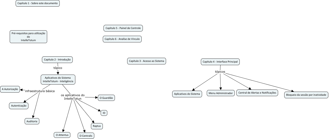 Esse mapa conceitual, produzido no IHMC CmapTools, tem a informação relacionada a: 01. intelletotum - capitulos 01 a 06, Capítulo 2 - Introdução tópico Aplicativos do Sistema IntelleTotum - Inteligência, Aplicativos do Sistema IntelleTotum - Inteligência os aplicativos do IntelleTotun O Attentus, Capítulo 4 - Interface Principal tópicos Bloqueio da sessão por inatividade, Aplicativos do Sistema IntelleTotum - Inteligência infraestrutura básica A Autorização, Capítulo 4 - Interface Principal tópicos Aplicativos do Sistema, Aplicativos do Sistema IntelleTotum - Inteligência os aplicativos do IntelleTotun Raptus, Aplicativos do Sistema IntelleTotum - Inteligência os aplicativos do IntelleTotun O Centralis, Aplicativos do Sistema IntelleTotum - Inteligência os aplicativos do IntelleTotun O Guardião, Aplicativos do Sistema IntelleTotum - Inteligência infraestrutura básica Auditoria, Aplicativos do Sistema IntelleTotum - Inteligência infraestrutura básica Autenticação, Capítulo 4 - Interface Principal tópicos Menu Administrador, Aplicativos do Sistema IntelleTotum - Inteligência os aplicativos do IntelleTotun ID, Capítulo 4 - Interface Principal tópicos Central de Alertas e Notificações