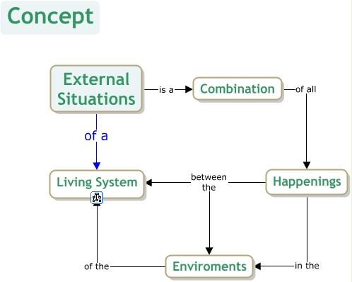 This Concept Map, created with IHMC CmapTools, has information related to: External Situations, Happenings in the Enviroments, Happenings between the Enviroments, External Situations is a Combination, External Situations of a Living System, Enviroments of the Living System, Happenings between the Living System, Combination of all Happenings