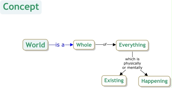 This Concept Map, created with IHMC CmapTools, has information related to: World, Everything which is physically or mentally Happening, Whole of Everything, Everything which is physically or mentally Existing, World is a Whole