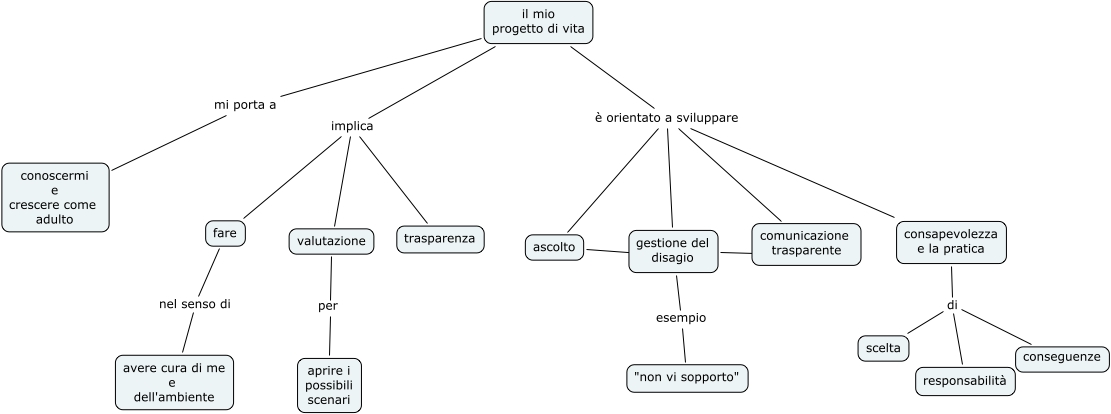 Questa Cmap, creata con IHMC CmapTools, contiene informazioni relative a: progetto di vita, fare nel senso di avere cura di me e dell'ambiente, ascolto ???? gestione del disagio, il mio progetto di vita è orientato a sviluppare comunicazione trasparente, consapevolezza e la pratica di responsabilità, gestione del disagio ???? comunicazione trasparente, il mio progetto di vita implica fare, il mio progetto di vita è orientato a sviluppare gestione del disagio, consapevolezza e la pratica di scelta, consapevolezza e la pratica di conseguenze, il mio progetto di vita è orientato a sviluppare ascolto, il mio progetto di vita implica trasparenza, il mio progetto di vita è orientato a sviluppare consapevolezza e la pratica, il mio progetto di vita mi porta a conoscermi e crescere come adulto, il mio progetto di vita implica valutazione, valutazione per aprire i possibili scenari, gestione del disagio esempio "non vi sopporto"