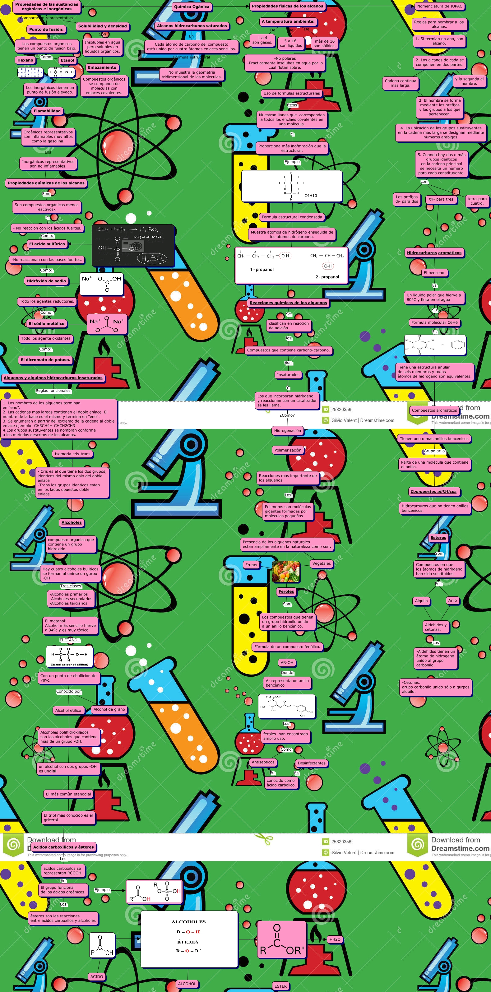 Este Cmap, tiene información relacionada con: QuimicaGenesis, Propiedades quìmicas de los alcanos Son Son compuestos orgànicos menos reactivos-., feroles han encontrado amplio uso. Como Antisepticos, 4. La ubicaciòn de los grupos sustituyentes en la cadena mas larga se designan mediante nùmeros aràbigos. ???? 5. Cuando hay dos o màs grupos identicos en la cadena principal se necesita un nùmero para cada constituyente., 1. Si termian en ano, son alcano. ???? 2. Los alcanos de cada se componen en dos partes., El màs comùn etanodial ???? El triol mas conocido es el gricerol., Hay cuatro alcoholes buliticos se forman al unirse un gurpo -OH Tres clases -Alcoholes primarios -Alcoholes secundarios -Alcoholes terciarios, ????, Todo los agentes reductores. Como: El sòdio metàlico, Parte de una molècula que contiene el anillo. ???? Compuestos alifàticos, àcidos carboxìlos se representan RCOOH. En El grupo funcional de los àcidos orgànicos., Formula estructural condensada ???? Muestra àtomos de hidrògeno enseguida de los atomos de carbono., ???? Hidròxido de sodio, Muestran lìanes que corresponden a todos los enclaes covalentes en una molècula. Y Proporciona màs inofmraciòn que la estructural., Quìmica Ogànica ???? Alcanos hidrocarbunos saturados, ???? Tiene una estructura anular de seis miembros y todos àtomos de hidrògeno son equivalentes., ???? Con un punto de ebullicion de 78ºc., Fòrmula de un compuesto fenòlico. ???? AR-OH, un alcohol con dos grupos -OH es undiol ???? El màs comùn etanodial, tetra-para cuatro. con Los prefijos di- para dos, Enlazamiento ???? Insolubles en agua pero solubles en lìquidos orgànicos.
