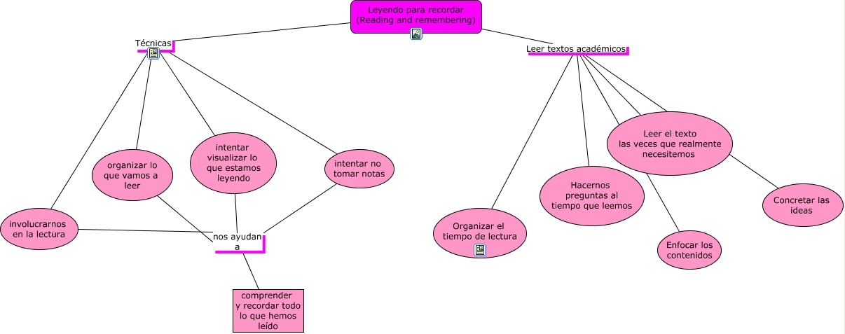 Este Cmap, tiene información relacionada con: leyendo para recordar- Cristina Valentín, Leyendo para recordar (Reading and remembering) Leer textos académicos Organizar el tiempo de lectura, intentar no tomar notas nos ayudan a comprender y recordar todo lo que hemos leído, Leyendo para recordar (Reading and remembering) Técnicas organizar lo que vamos a leer, Leyendo para recordar (Reading and remembering) Leer textos académicos Enfocar los contenidos, organizar lo que vamos a leer nos ayudan a comprender y recordar todo lo que hemos leído, Leyendo para recordar (Reading and remembering) Técnicas involucrarnos en la lectura, Leyendo para recordar (Reading and remembering) Técnicas intentar no tomar notas, Leyendo para recordar (Reading and remembering) Leer textos académicos Concretar las ideas, involucrarnos en la lectura nos ayudan a comprender y recordar todo lo que hemos leído, Leyendo para recordar (Reading and remembering) Leer textos académicos Leer el texto las veces que realmente necesitemos, Leyendo para recordar (Reading and remembering) Leer textos académicos Hacernos preguntas al tiempo que leemos, Leyendo para recordar (Reading and remembering) Técnicas intentar visualizar lo que estamos leyendo, intentar visualizar lo que estamos leyendo nos ayudan a comprender y recordar todo lo que hemos leído