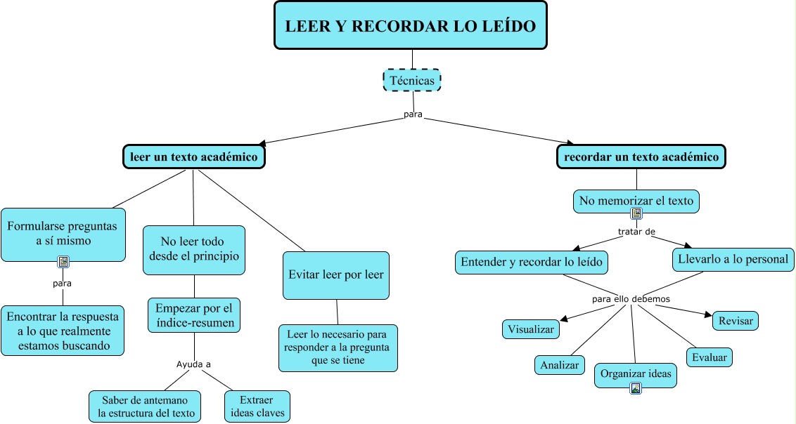Este Cmap, tiene información relacionada con: Leer y recordar lo leído, Entender y recordar lo leído para ello debemos Evaluar, Entender y recordar lo leído para ello debemos Analizar, Empezar por el índice-resumen Ayuda a Extraer ideas claves, Llevarlo a lo personal para ello debemos Organizar ideas, Entender y recordar lo leído para ello debemos Revisar, Llevarlo a lo personal para ello debemos Revisar, Llevarlo a lo personal para ello debemos Visualizar, recordar un texto académico ???? No memorizar el texto, Formularse preguntas a sí mismo para Encontrar la respuesta a lo que realmente estamos buscando, leer un texto académico ???? Evitar leer por leer, No memorizar el texto tratar de Entender y recordar lo leído, Empezar por el índice-resumen Ayuda a Saber de antemano la estructura del texto, Evitar leer por leer ???? Leer lo necesario para responder a la pregunta que se tiene, leer un texto académico ???? Formularse preguntas a sí mismo, Técnicas para recordar un texto académico, No leer todo desde el principio ???? Empezar por el índice-resumen, leer un texto académico ???? No leer todo desde el principio, Entender y recordar lo leído para ello debemos Organizar ideas, Llevarlo a lo personal para ello debemos Analizar, Llevarlo a lo personal para ello debemos Evaluar