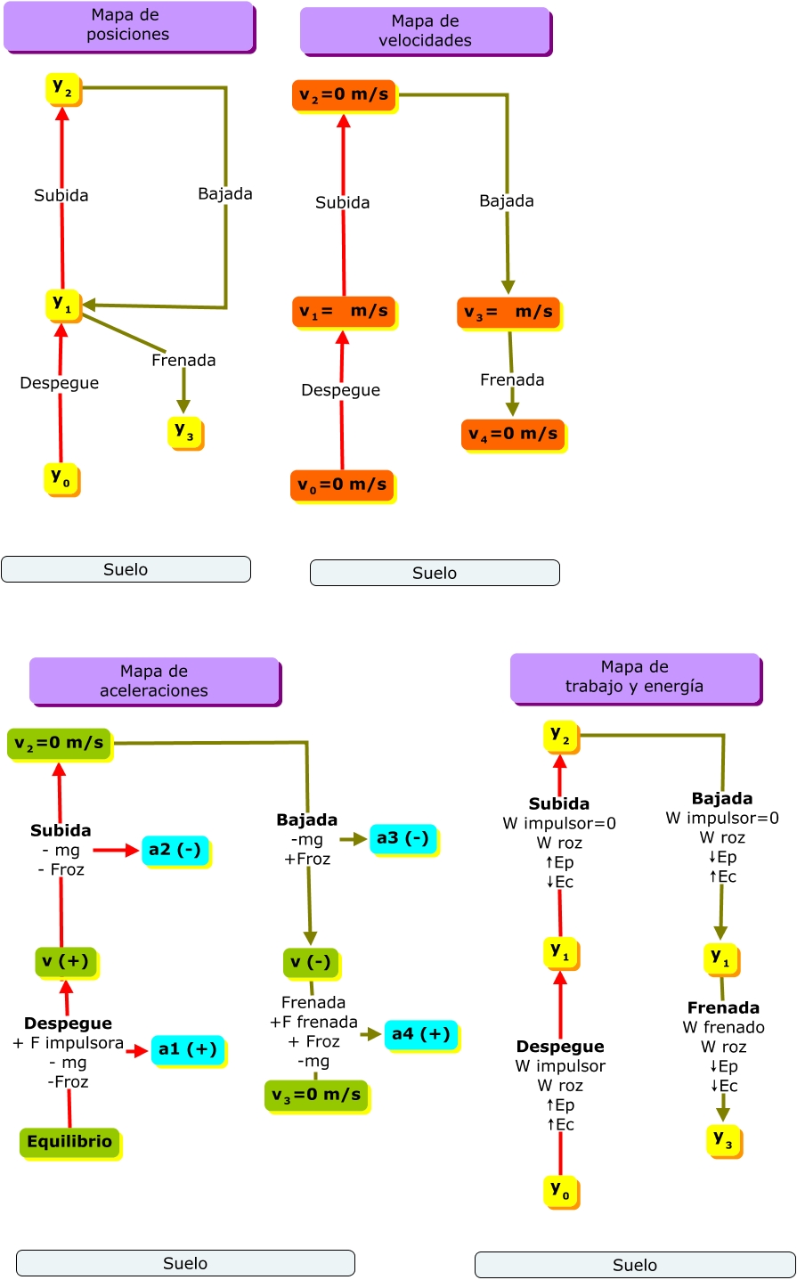 Este Cmap, tiene información relacionada con: Salto de Sergio, <math xmlns="http://www.w3.org/1998/Math/MathML"> <mrow> <mmultiscripts> <mtext> y </mtext> <mtext> 2 </mtext> <none/> </mmultiscripts> </mrow> </math> Bajada W impulsor=0 W roz ↓Ep ↑Ec <math xmlns="http://www.w3.org/1998/Math/MathML"> <mrow> <mmultiscripts> <mtext> y </mtext> <mtext> 1 </mtext> <none/> </mmultiscripts> </mrow> </math>, <math xmlns="http://www.w3.org/1998/Math/MathML"> <mrow> <mmultiscripts> <mtext> y </mtext> <mtext> 1 </mtext> <none/> </mmultiscripts> </mrow> </math> Frenada <math xmlns="http://www.w3.org/1998/Math/MathML"> <mrow> <mmultiscripts> <mtext> y </mtext> <mtext> 3 </mtext> <none/> </mmultiscripts> </mrow> </math>, <math xmlns="http://www.w3.org/1998/Math/MathML"> <mrow> <mmultiscripts> <mtext> y </mtext> <mtext> 1 </mtext> <none/> </mmultiscripts> </mrow> </math> Subida <math xmlns="http://www.w3.org/1998/Math/MathML"> <mrow> <mmultiscripts> <mtext> y </mtext> <mtext> 2 </mtext> <none/> </mmultiscripts> </mrow> </math>, <math xmlns="http://www.w3.org/1998/Math/MathML"> <mtext> v (+) </mtext> </math> Subida - mg - Froz <math xmlns="http://www.w3.org/1998/Math/MathML"> <mrow> <mmultiscripts> <mtext> v </mtext> <mtext> 2 </mtext> <none/> </mmultiscripts> <mtext> =0 m/s </mtext> </mrow> </math>, <math xmlns="http://www.w3.org/1998/Math/MathML"> <mtext> v (-) </mtext> </math> Frenada +F frenada + Froz -mg a4 (+), <math xmlns="http://www.w3.org/1998/Math/MathML"> <mrow> <mmultiscripts> <mtext> v </mtext> <mtext> 2 </mtext> <none/> </mmultiscripts> <mtext> =0 m/s </mtext> </mrow> </math> Bajada <math xmlns="http://www.w3.org/1998/Math/MathML"> <mrow> <mmultiscripts> <mtext> v </mtext> <mtext> 3 </mtext> <none/> </mmultiscripts> <mtext> = m/s </mtext> </mrow> </math>, <math xmlns="http://www.w3.org/1998/Math/MathML"> <mrow> <mmultiscripts> <mtext> y </mtext> <mtext> 2 </mtext> <none/> </mmultiscripts> </mrow> </math> Bajada <math xmlns="http://www.w3.org/1998/Math/MathML"> <mrow> <mmultiscripts> <mtext> y </mtext> <mtext> 1 </mtext> <none/> </mmultiscripts> </mrow> </math>, <math xmlns="http://www.w3.org/1998/Math/MathML"> <mtext> Equilibrio </mtext> </math> Despegue + F impulsora - mg -Froz <math xmlns="http://www.w3.org/1998/Math/MathML"> <mtext> v (+) </mtext> </math>, <math xmlns="http://www.w3.org/1998/Math/MathML"> <mrow> <mmultiscripts> <mtext> v </mtext> <mtext> 2 </mtext> <none/> </mmultiscripts> <mtext> =0 m/s </mtext> </mrow> </math> Bajada -mg +Froz <math xmlns="http://www.w3.org/1998/Math/MathML"> <mtext> v (-) </mtext> </math>, <math xmlns="http://www.w3.org/1998/Math/MathML"> <mrow> <mmultiscripts> <mtext> v </mtext> <mtext> 3 </mtext> <none/> </mmultiscripts> <mtext> = m/s </mtext> </mrow> </math> Frenada <math xmlns="http://www.w3.org/1998/Math/MathML"> <mrow> <mmultiscripts> <mtext> v </mtext> <mtext> 4 </mtext> <none/> </mmultiscripts> <mtext> =0 m/s </mtext> </mrow> </math>, <math xmlns="http://www.w3.org/1998/Math/MathML"> <mrow> <mmultiscripts> <mtext> y </mtext> <mtext> 0 </mtext> <none/> </mmultiscripts> </mrow> </math> Despegue <math xmlns="http://www.w3.org/1998/Math/MathML"> <mrow> <mmultiscripts> <mtext> y </mtext> <mtext> 1 </mtext> <none/> </mmultiscripts> </mrow> </math>, <math xmlns="http://www.w3.org/1998/Math/MathML"> <mrow> <mmultiscripts> <mtext> y </mtext> <mtext> 0 </mtext> <none/> </mmultiscripts> </mrow> </math> Despegue W impulsor W roz ↑Ep ↑Ec <math xmlns="http://www.w3.org/1998/Math/MathML"> <mrow> <mmultiscripts> <mtext> y </mtext> <mtext> 1 </mtext> <none/> </mmultiscripts> </mrow> </math>, <math xmlns="http://www.w3.org/1998/Math/MathML"> <mrow> <mmultiscripts> <mtext> v </mtext> <mtext> 1 </mtext> <none/> </mmultiscripts> <mtext> = m/s </mtext> </mrow> </math> Subida <math xmlns="http://www.w3.org/1998/Math/MathML"> <mrow> <mmultiscripts> <mtext> v </mtext> <mtext> 2 </mtext> <none/> </mmultiscripts> <mtext> =0 m/s </mtext> </mrow> </math>, <math xmlns="http://www.w3.org/1998/Math/MathML"> <mrow> <mmultiscripts> <mtext> v </mtext> <mtext> 2 </mtext> <none/> </mmultiscripts> <mtext> =0 m/s </mtext> </mrow> </math> Bajada -mg +Froz a3 (-), <math xmlns="http://www.w3.org/1998/Math/MathML"> <mtext> v (-) </mtext> </math> Frenada +F frenada + Froz -mg <math xmlns="http://www.w3.org/1998/Math/MathML"> <mrow> <mmultiscripts> <mtext> v </mtext> <mtext> 3 </mtext> <none/> </mmultiscripts> <mtext> =0 m/s </mtext> </mrow> </math>, <math xmlns="http://www.w3.org/1998/Math/MathML"> <mtext> v (+) </mtext> </math> Subida - mg - Froz a2 (-), <math xmlns="http://www.w3.org/1998/Math/MathML"> <mrow> <mmultiscripts> <mtext> y </mtext> <mtext> 1 </mtext> <none/> </mmultiscripts> </mrow> </math> Frenada W frenado W roz ↓Ep ↓Ec <math xmlns="http://www.w3.org/1998/Math/MathML"> <mrow> <mmultiscripts> <mtext> y </mtext> <mtext> 3 </mtext> <none/> </mmultiscripts> </mrow> </math>, <math xmlns="http://www.w3.org/1998/Math/MathML"> <mtext> Equilibrio </mtext> </math> Despegue + F impulsora - mg -Froz a1 (+), <math xmlns="http://www.w3.org/1998/Math/MathML"> <mrow> <mmultiscripts> <mtext> v </mtext> <mtext> 0 </mtext> <none/> </mmultiscripts> <mtext> =0 m/s </mtext> </mrow> </math> Despegue <math xmlns="http://www.w3.org/1998/Math/MathML"> <mrow> <mmultiscripts> <mtext> v </mtext> <mtext> 1 </mtext> <none/> </mmultiscripts> <mtext> = m/s </mtext> </mrow> </math>, <math xmlns="http://www.w3.org/1998/Math/MathML"> <mrow> <mmultiscripts> <mtext> y </mtext> <mtext> 1 </mtext> <none/> </mmultiscripts> </mrow> </math> Subida W impulsor=0 W roz ↑Ep ↓Ec <math xmlns="http://www.w3.org/1998/Math/MathML"> <mrow> <mmultiscripts> <mtext> y </mtext> <mtext> 2 </mtext> <none/> </mmultiscripts> </mrow> </math>