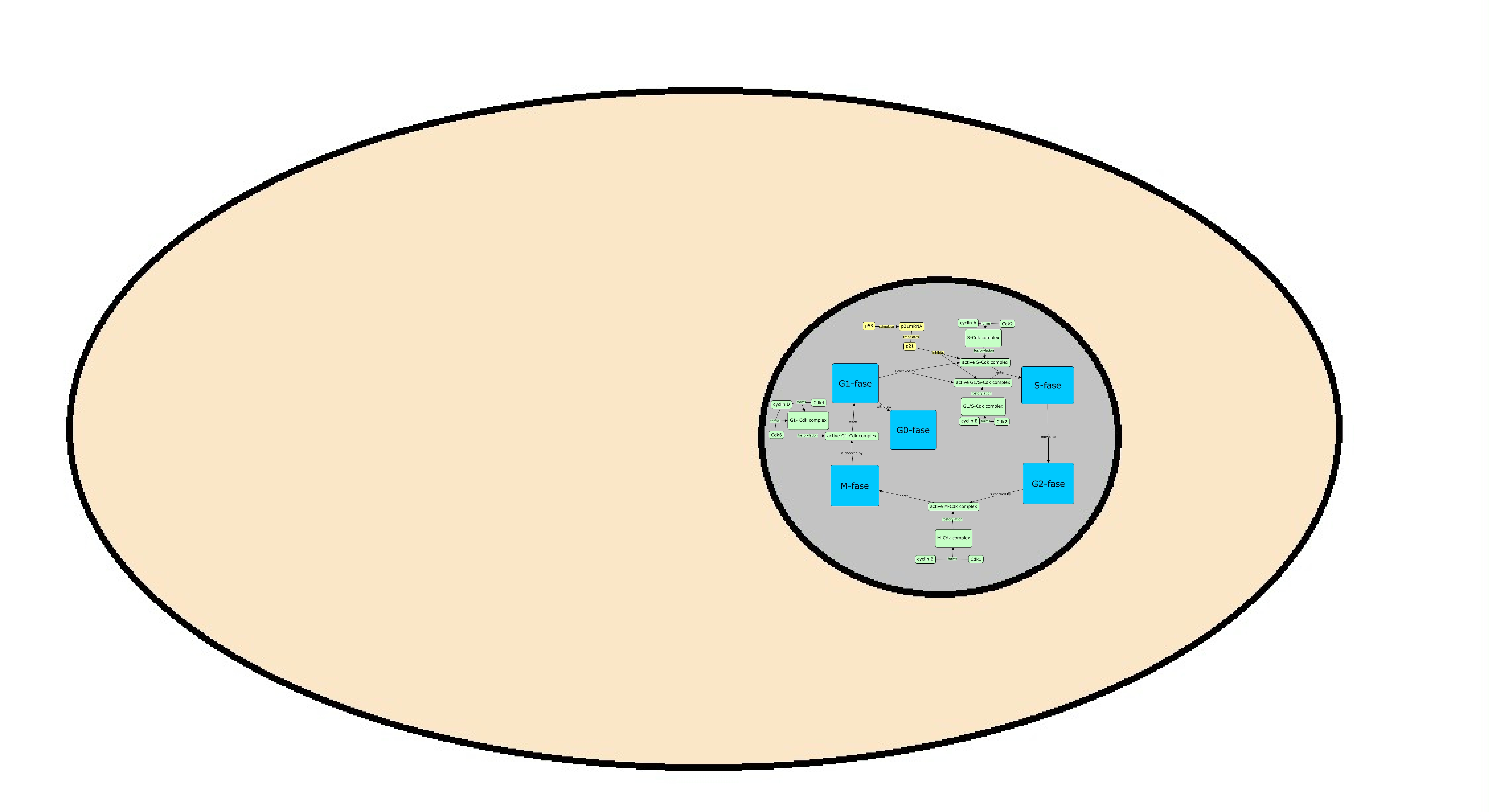 Deze Concept Map heeft informatie gerelateerd aan: TU06groepA-conceptmap.cmap, S-Cdk complex fosforylation active S-Cdk complex, p53 stimulate p21mRNA, G1-fase withdraw G0-fase, cyclin A forms Cdk2, G1-fase is checked by active S-Cdk complex, cyclin E forms Cdk2, cyclin B forms M-Cdk complex, cyclin B forms Cdk1, cyclin D forms G1- Cdk complex, cyclin D forms G1- Cdk complex, p21 inhibits active S-Cdk complex, active G1-Cdk complex enter G1-fase, active G1/S-Cdk complex enter S-fase, cyclin A forms S-Cdk complex, p21 inhibits active G1/S-Cdk complex, cyclin D forms Cdk6, G1- Cdk complex fosforylation active G1-Cdk complex, cyclin D forms Cdk4, G1-fase is checked by active G1/S-Cdk complex, p21mRNA translates p21