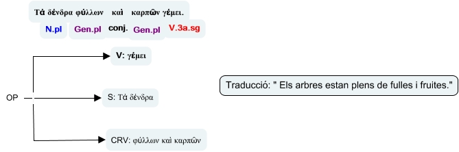 Aquest mapa conceptual conté informació relacionada amb: pedaç, OP CRV: φύλλων καὶ καρπῶν, OP V: γέμει, OP S: Τὰ δένδρα