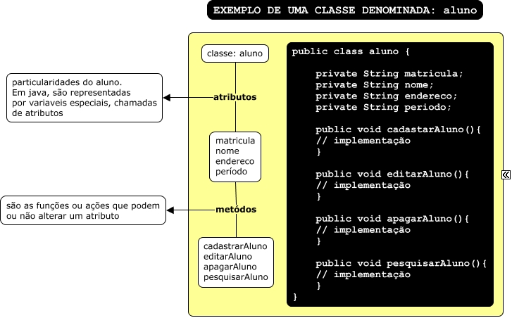 Esse mapa conceitual, produzido no IHMC CmapTools, tem a informação relacionada a: 02. forum, matricula nome endereco período metódos cadastrarAluno editarAluno apagarAluno pesquisarAluno, matricula nome endereco período metódos são as funções ou ações que podem ou não alterar um atributo, classe: aluno atributos particularidades do aluno. Em java, são representadas por variaveis especiais, chamadas de atributos, classe: aluno atributos matricula nome endereco período