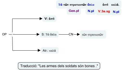 Este Cmap, tiene información relacionada con: 2ndecl_29, S: Τὰ ὅπλα CN τῶν στρατιωτῶν, OP S: Τὰ ὅπλα, OP V: ἐστὶ, OP Atr.: καλά
