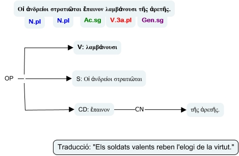 Este Cmap, tiene información relacionada con: adj_1a_classe_06, OP S: Οἱ ἀνδρείοι στρατιῶται, OP V: λαμβάνουσι, CD: ἔπαινον CN τῆς ἀρετῆς., OP CD: ἔπαινον