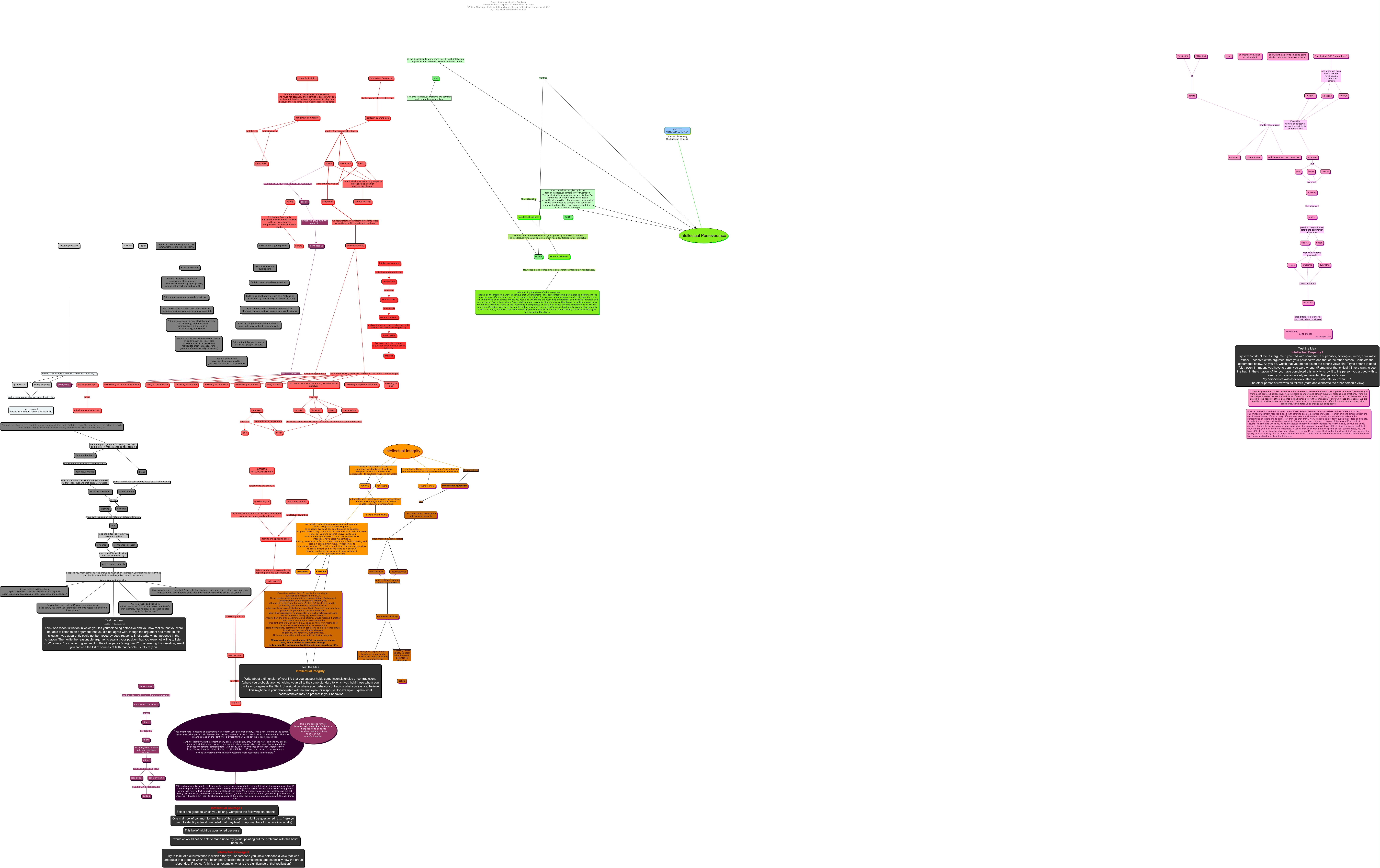 Este Cmap, tiene información relacionada con: Triats of a disciplined mind, belong Intellectual Courage is needed to be fair-minded thinkers in these cirumstances. The penalities for nonconformity can be severe, Intellectual Perseverance is the disposition to work one's way through intellectual complexities despite the frustration inherent in the task, well-reasoned appeals Suppose you meet someone who shows so much of an interest in your significant other that you feel intensely jealous and negative toward that person Would you shift your view Are you ready and willing to admit that some of your most passionate beliefs (for example, your religious or political beliefs) may in fact be "wrong?", undermine it presenting it in it's weakest form, extended time As you evaluate, pressing the needs of other's, On the other hand it does not make sense to have faith in a new acquaintance, AGENTES ANTICOLINESTERASA questioning the belief, is questioning us, conform to one's own afraid of giving consideration to viewpoints, task as Some intellectual problems are complex and cannot be easily solved solved, Intellectual Laziness Demonstrated in the tendency to give up quickly intellectual laziness. The intellectually indolent, or lazy, person has a low tolerance for intellectual pain or frustration., Intellectual Cowardice is the fear of ideas that do not conform to one's own, personal identity All of the following ideas are "sacred" in the minds of some people believing in capitalism, sound evidence and become reasonable persons, despite the deep-seated obstacles in human nature and social life, them fear of rejection is often lurking in the back of their minds, we are unable to analyze the work-related beliefs we hold, then we are essentially trapped by those beliefs, ego-centric thinking professing certain beliefs, we often fail to behave in accordance with those beliefs, ideas, that are percieved as dangerous, desires making us unable to consider problems, well-reasoned appeals Suppose you meet someone who shows so much of an interest in your significant other that you feel intensely jealous and negative toward that person Would you shift your view Do you think you could shift your view, even when, deep down, you want your significant other to reject this person in favor of you?