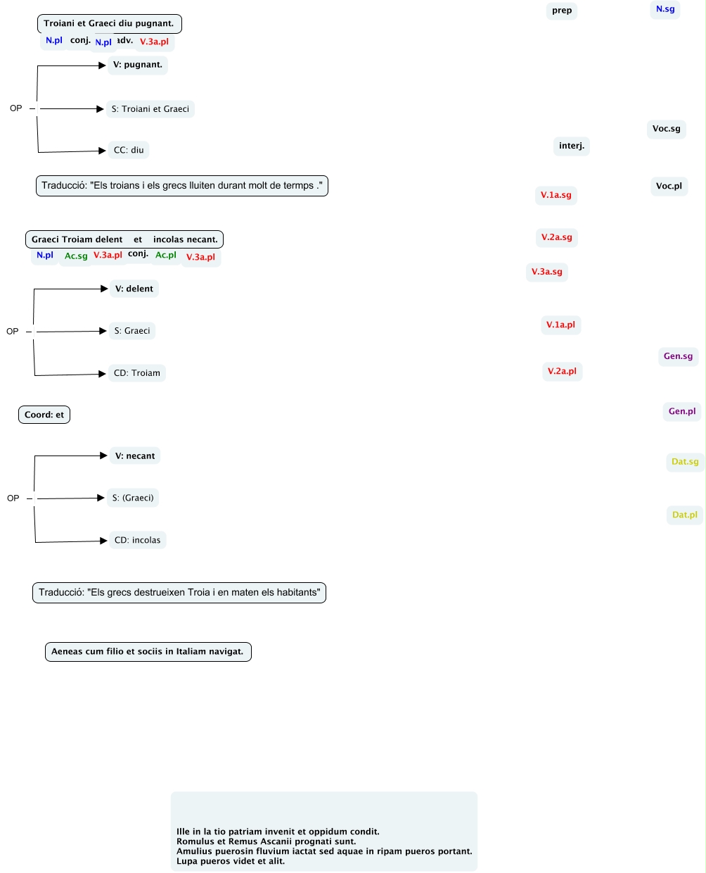 Aquest mapa conceptual conté informació relacionada amb: lliço4_4_23, OP CD: Troiam, OP S: Troiani et Graeci, OP V: necant, OP S: (Graeci), OP CD: incolas, OP V: pugnant., OP V: delent, OP CC: diu, OP S: Graeci