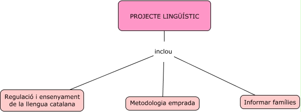 Este Cmap, tiene información relacionada con: PL, PROJECTE LINGÜÍSTIC inclou Regulació i ensenyament de la llengua catalana, PROJECTE LINGÜÍSTIC inclou Metodologia emprada, PROJECTE LINGÜÍSTIC inclou Informar famílies