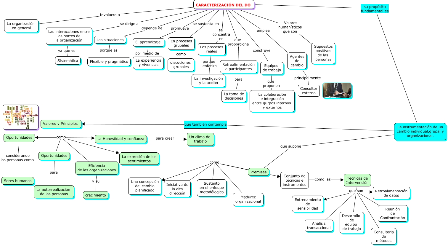 Este Cmap, tiene información relacionada con: Evolución Historica D.0, Técnicas de Intervención que son Analisis transaccional, Oportunidades para La autorrealización de las personas, Valores y Principios como Oportunidades, Valores y Principios como Oportunidades, Premisas como Una concepción del cambio planificado, Conjunto de técnicas e instrumentos como las Técnicas de Intervención, Retroalimentación a participantes para La toma de decisiones, CARACTERIZACIÓN DEL DO se concentra en Los procesos reales, CARACTERIZACIÓN DEL DO Valores humanísticos que son Supuestos positivos de las personas, Técnicas de Intervención que son Consultoria de métodos, CARACTERIZACIÓN DEL DO promueve El aprendizaje, Premisas como Madurez organizacional, La instrumentación de un cambio individual,grupal y organizacional. que supone Premisas, CARACTERIZACIÓN DEL DO se sustenta en En procesos grupales, Técnicas de Intervención que son Reunión de Confrontación, CARACTERIZACIÓN DEL DO que proporciona Retroalimentación a participantes, La instrumentación de un cambio individual,grupal y organizacional. que también contempla Valores y Principios, Los procesos reales porque enfatiza La investigación y la acción, Premisas como Sustento en el enfoque metodólogico, Premisas como Iniciativa de la alta dirección