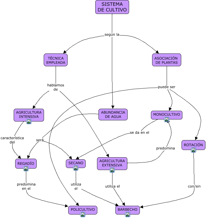 Este Cmap, tiene información relacionada con: Paisajes agrarios Quia01, ABUNDANCIA DE AGUA será REGADÍO, SISTEMA DE CULTIVO según la ASOCIACIÓN DE PLANTAS, AGRICULTURA INTENSIVA característica del REGADÍO, SECANO utiliza el BARBECHO, ASOCIACIÓN DE PLANTAS puede ser ROTACIÓN, ASOCIACIÓN DE PLANTAS puede ser POLICULTIVO, ABUNDANCIA DE AGUA será SECANO, REGADÍO predomina en el POLICULTIVO, SISTEMA DE CULTIVO según la TÉCNICA EMPLEADA, TÉCNICA EMPLEADA hablamos de AGRICULTURA EXTENSIVA, ASOCIACIÓN DE PLANTAS puede ser MONOCULTIVO, AGRICULTURA EXTENSIVA predomina MONOCULTIVO, MONOCULTIVO se da en el SECANO, ROTACIÓN con/sin BARBECHO, AGRICULTURA EXTENSIVA utiliza el BARBECHO, SISTEMA DE CULTIVO según la ABUNDANCIA DE AGUA, TÉCNICA EMPLEADA hablamos de AGRICULTURA INTENSIVA