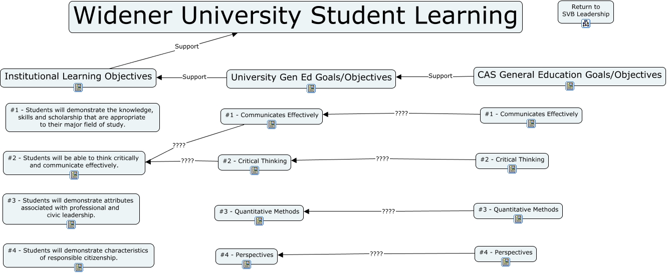 This Concept Map, created with IHMC CmapTools, has information related to: ILO and General Education, #1 - Communicates Effectively ???? #1 - Communicates Effectively, #3 - Quantitative Methods ???? #3 - Quantitative Methods, University Gen Ed Goals/Objectives Support Institutional Learning Objectives, CAS General Education Goals/Objectives Support University Gen Ed Goals/Objectives, #4 - Perspectives ???? #4 - Perspectives, #2 - Critical Thinking ???? #2 - Critical Thinking, Institutional Learning Objectives Support Widener University Student Learning, #1 - Communicates Effectively ???? #2 - Students will be able to think critically and communicate effectively., #2 - Critical Thinking ???? #2 - Students will be able to think critically and communicate effectively.