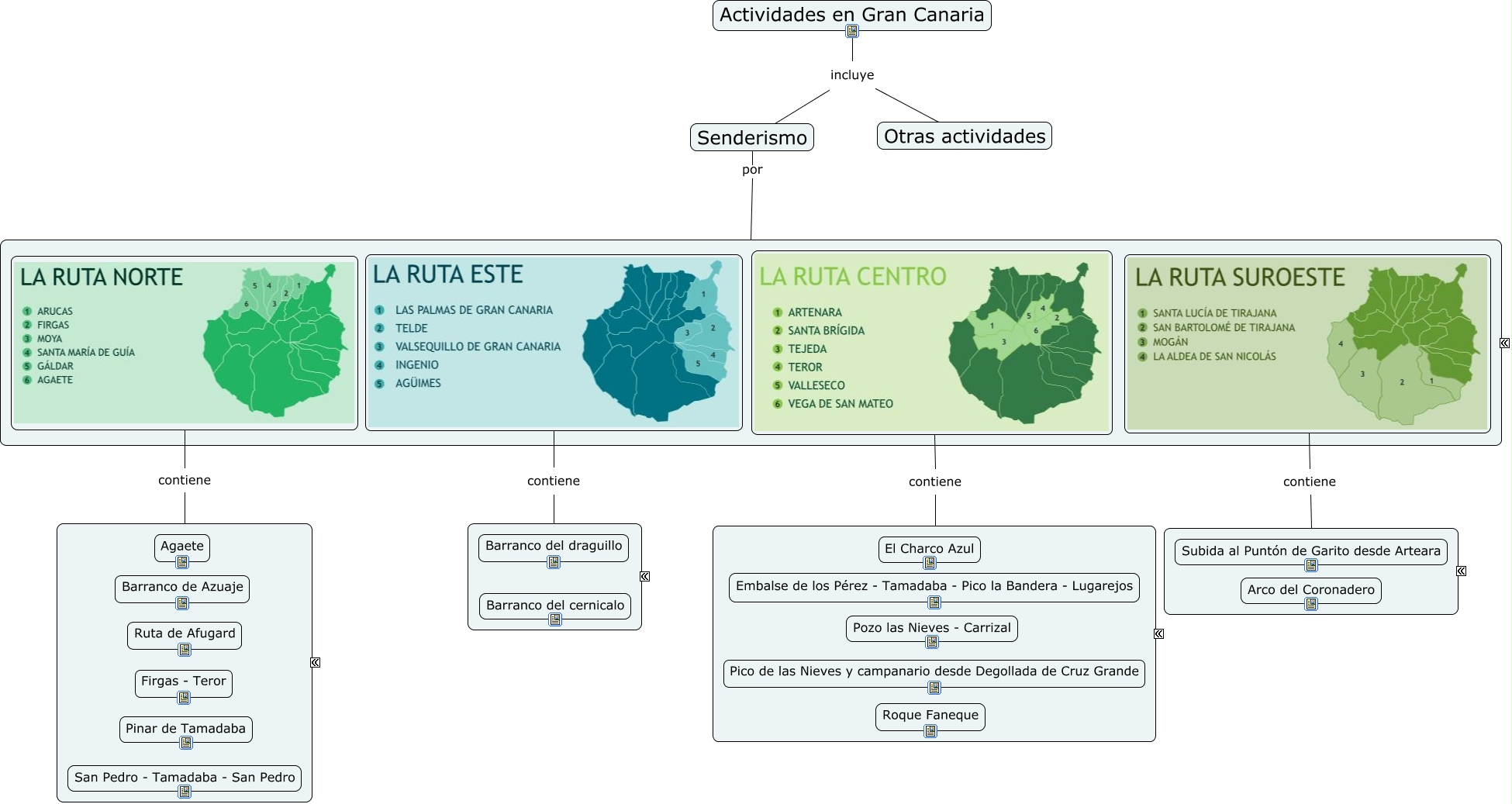 Este Cmap, tiene información relacionada con: Practica 1 - Introducción, contiene ????, Senderismo por ????, Actividades en Gran Canaria incluye Senderismo, contiene ????, contiene ????, Actividades en Gran Canaria incluye Otras actividades, contiene ????