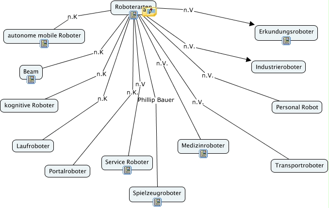 Dieses mit IHMC CmapTools erstellte CMap hat Informationen bezüglich: Roboterarten, Roboterarten n.V. Medizinroboter, Roboterarten n.K Laufroboter, Roboterarten n.K. Portalroboter, Roboterarten Phillip Bauer Spielzeugroboter, Roboterarten n.K autonome mobile Roboter, Roboterarten n.V. Transportroboter, Roboterarten n.V. Personal Robot, Roboterarten n.V Service Roboter, Roboterarten n.K kognitive Roboter, Roboterarten n.V. Industrieroboter, Roboterarten n.V Erkundungsroboter