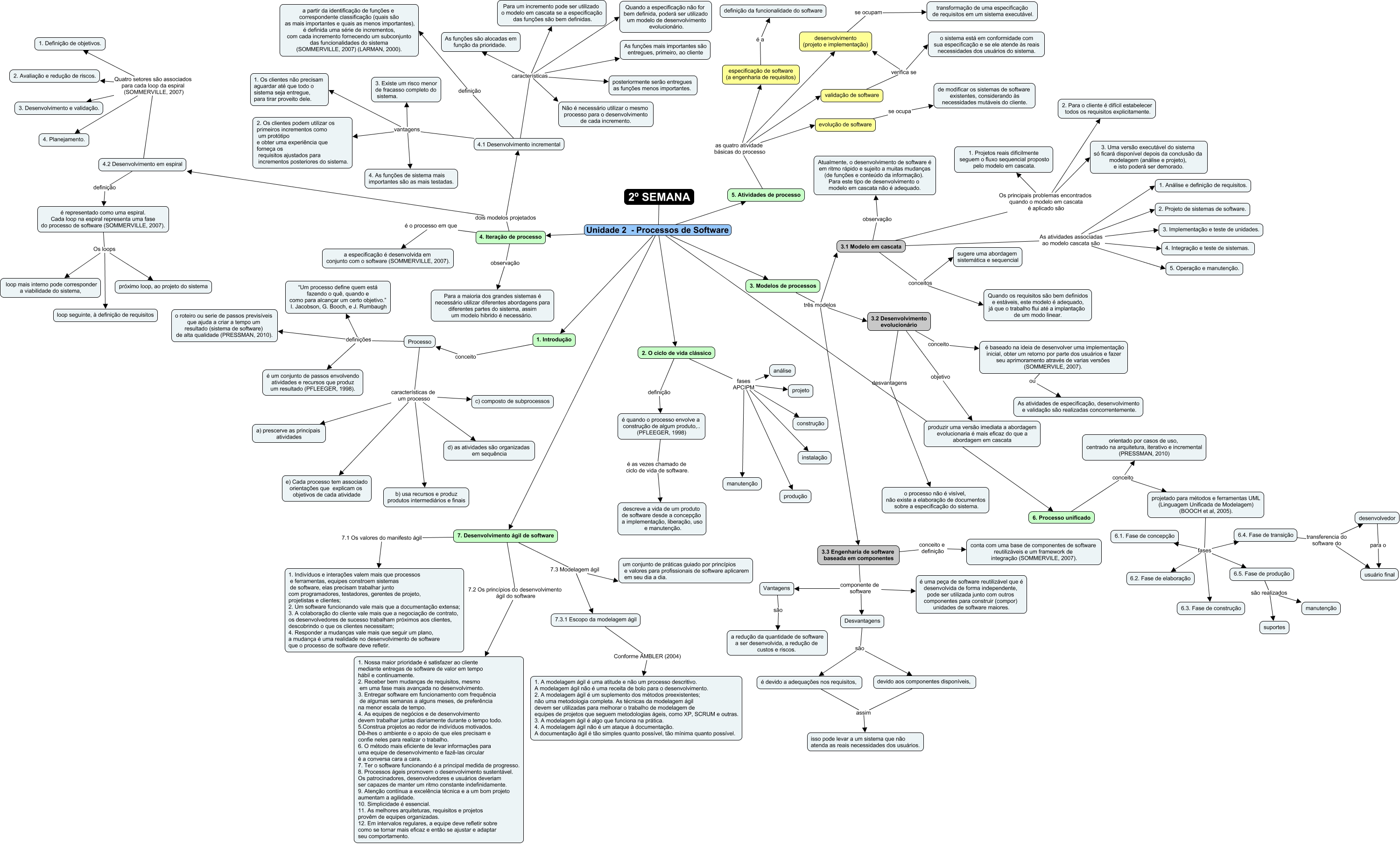 Esse mapa conceitual, produzido no IHMC CmapTools, tem a informação relacionada a: 2a semana, 4.2 Desenvolvimento em espiral Quatro setores são associados para cada loop da espiral (SOMMERVILLE, 2007) 3. Desenvolvimento e validação., 4.1 Desenvolvimento incremental vantagens 4. As funções de sistema mais importantes são as mais testadas., 6.4. Fase de transição transferencia do software do desenvolvedor, 1. Introdução conceito Processo, 2. O ciclo de vida clássico fases APCIPM instalação, devido aos componentes disponíveis, assim isso pode levar a um sistema que não atenda as reais necessidades dos usuários., 6.4. Fase de transição transferencia do software do usuário final, validação de software verifica se desenvolvimento (projeto e implementação), 4.1 Desenvolvimento incremental características Quando a especificação não for bem definida, poderá ser utilizado um modelo de desenvolvimento evolucionário., projetado para métodos e ferramentas UML (Linguagem Unificada de Modelagem) (BOOCH et al, 2005). fases 6.2. Fase de elaboração, 4.1 Desenvolvimento incremental vantagens 2. Os clientes podem utilizar os primeiros incrementos como um protótipo e obter uma experiência que forneça os requisitos ajustados para incrementos posteriores do sistema., 3.2 Desenvolvimento evolucionário desvantagens o processo não é visível, não existe a elaboração de documentos sobre a especificação do sistema., Processo características de um processo a) prescerve as principais atividades, é representado como uma espiral. Cada loop na espiral representa uma fase do processo de software (SOMMERVILLE, 2007). Os loops próximo loop, ao projeto do sistema, Processo definições é um conjunto de passos envolvendo atividades e recursos que produz um resultado (PFLEEGER, 1998)., 3.1 Modelo em cascata conceitos sugere uma abordagem sistemática e sequencial, Processo características de um processo c) composto de subprocessos, desenvolvedor para o usuário final, 2. O ciclo de vida clássico fases APCIPM análise, 3.1 Modelo em cascata Os principais problemas encontrados quando o modelo em cascata é aplicado são 3. Uma versão executável do sistema só ficará disponível depois da conclusão da modelagem (análise e projeto), e isto poderá ser demorado.