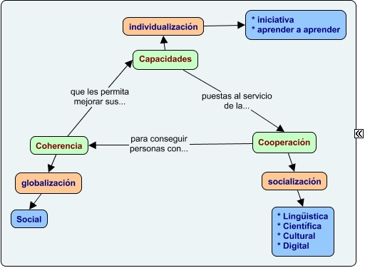 Este Cmap, tiene información relacionada con: Triángulo sencillo LOMCE, individualización * iniciativa * aprender a aprender, Capacidades puestas al servicio de la... Cooperación, Coherencia que les permita mejorar sus... Capacidades, Capacidades individualización, Cooperación para conseguir personas con... Coherencia, socialización * Lingüistica * Científica * Cultural * Digital, Coherencia globalización, Cooperación socialización, globalización Social