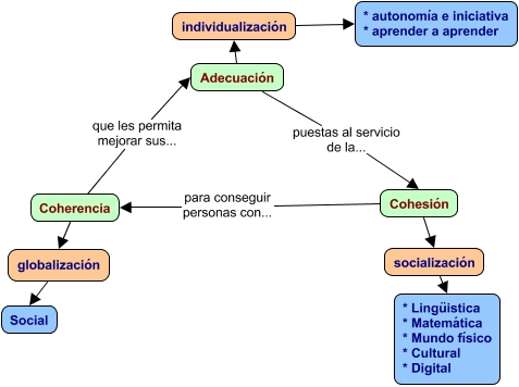 Este Cmap, tiene información relacionada con: Triángulo sencillo LOE Lengua, individualización * autonomía e iniciativa * aprender a aprender, Adecuación puestas al servicio de la... Cohesión, Coherencia que les permita mejorar sus... Adecuación, Adecuación individualización, Cohesión para conseguir personas con... Coherencia, socialización * Lingüistica * Matemática * Mundo físico * Cultural * Digital, Coherencia globalización, Cohesión socialización, globalización Social