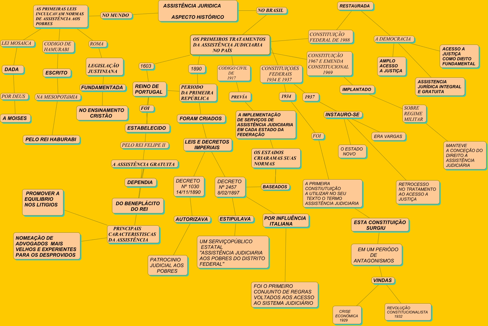 Esse mapa conceitual, produzido no IHMC CmapTools, tem a informação relacionada a: ASSISTENCIA JURIDICA, REINO DE PORTUGAL PERIODO DA PRIMEIRA REPÚBLICA FORAM CRIADOS, RESTAURADA A DEMOCRACIA AMPLO ACESSO A JUSTIÇA, 1890 ???? OS PRIMEIROS TRATAMENTOS DA ASSISTÊNCIA JUDICIARIA NO PAÍS, FORAM CRIADOS LEIS E DECRETOS IMPERIAIS DECRETO Nº 2457 8/02/1897, OS PRIMEIROS TRATAMENTOS DA ASSISTÊNCIA JUDICIARIA NO PAÍS NO BRASIL ASSISTÊNCIA JURIDICA ASPECTO HISTÓRICO, OS PRIMEIROS TRATAMENTOS DA ASSISTÊNCIA JUDICIARIA NO PAÍS 1603 REINO DE PORTUGAL, PREVÍA CODIGO CIVIL DE 1917 OS PRIMEIROS TRATAMENTOS DA ASSISTÊNCIA JUDICIARIA NO PAÍS, REINO DE PORTUGAL PERIODO DA PRIMEIRA REPÚBLICA 1890, DECRETO Nº 2457 8/02/1897 BASEADOS OS ESTADOS CRIARAMAS SUAS NORMAS, DECRETO Nº 2457 8/02/1897 ESTIPULAVA UM SERVIÇOPÚBLICO ESTATAL "ASSISTÊNCIA JUDICIARIA AOS POBRES DO DISTRITO FEDERAL", ESCRITO NA MESOPOTâMIA PELO REI HABURABI, LEGISLAÇÃO JUSTINIANA ROMA AS PRIMEIRAS LEIS INCULCAVAM NORMAS DE ASSISTÊNCIA AOS POBRES, 1937 INSTAURO-SE RETROCESSO NO TRATAMENTO AO ACESSO A JUSTIÇA, DECRETO Nº 1030 14/11/1890 AUTORIZAVA PATROCINIO JUDICIAL AOS POBRES, DO BENEPLÁCITO DO REI A ASSISTÊNCIA GRATUITA DEPENDIA, 1934 CONSTITUIÇOES FEDERAIS 1934 E 1937 1937, PREVÍA A IMPLEMENTAÇÃO DE SERVIÇOS DE ASSISTÊNCIA JUDICIIARIA EM CADA ESTADO DA FEDERAÇÃO OS ESTADOS CRIARAMAS SUAS NORMAS, RESTAURADA A DEMOCRACIA ACESSO A JUSTIÇA COMO DIEITO FUNDAMENTAL, 1934 CONSTITUIÇOES FEDERAIS 1934 E 1937 OS PRIMEIROS TRATAMENTOS DA ASSISTÊNCIA JUDICIARIA NO PAÍS, A PRIMEIRA CONSTIUTUIÇÃO A UTILIZAR NO SEU TEXTO O TERMO ASSISTÊNCIA JUDICIARIA ESTA CONSTITUIÇÃO SURGIU EM UM PERIÓDO DE ANTAGONISMOS